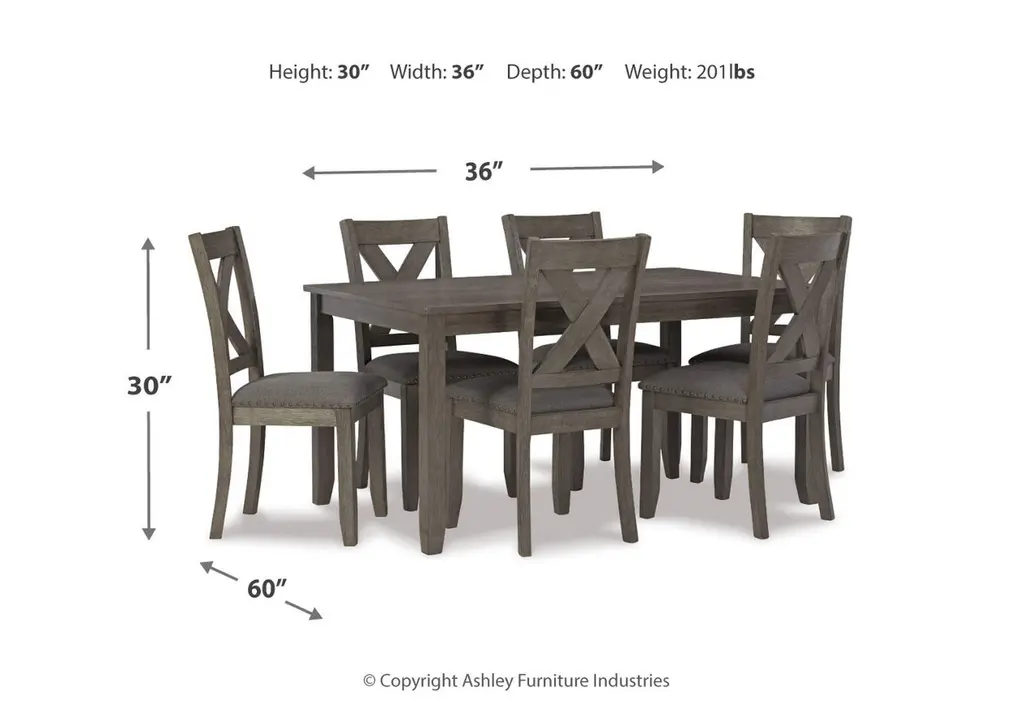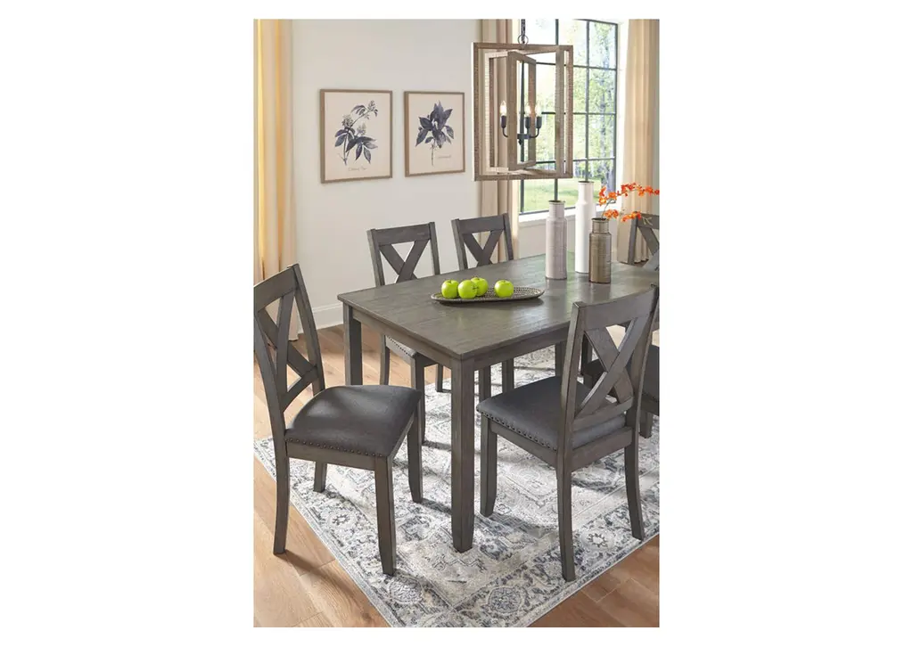 Perfect portion. Striking a simply chic pose, the Caitbrook dining set is styled with fascinating flair. Subtle gray wash finish gives the clean-lined design a casually cool sensibility, while the chair’s plushly cushioned seat in a soft, neutral upholstery adds to the allure. Weight 201.000 lbs. (90.45kgs.)