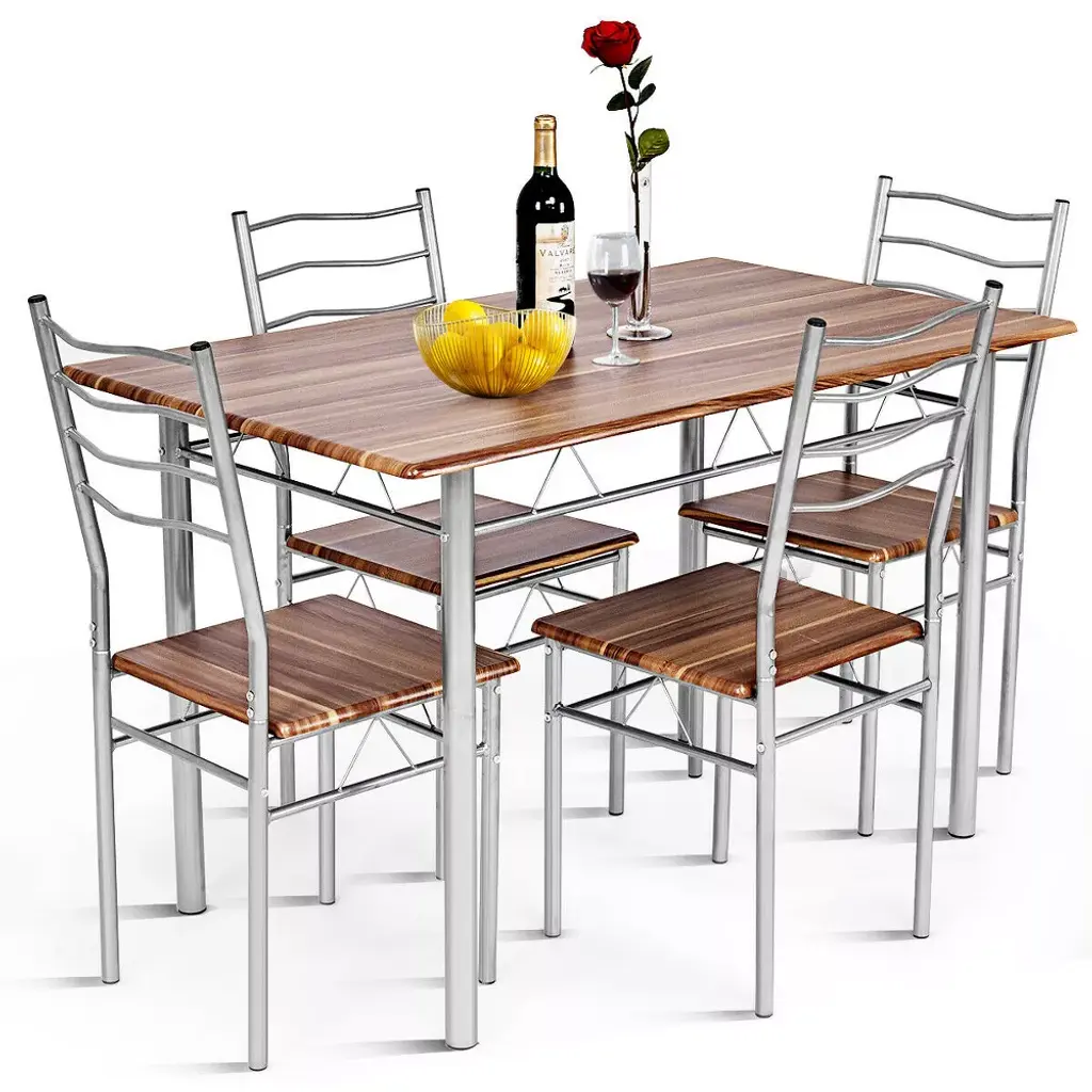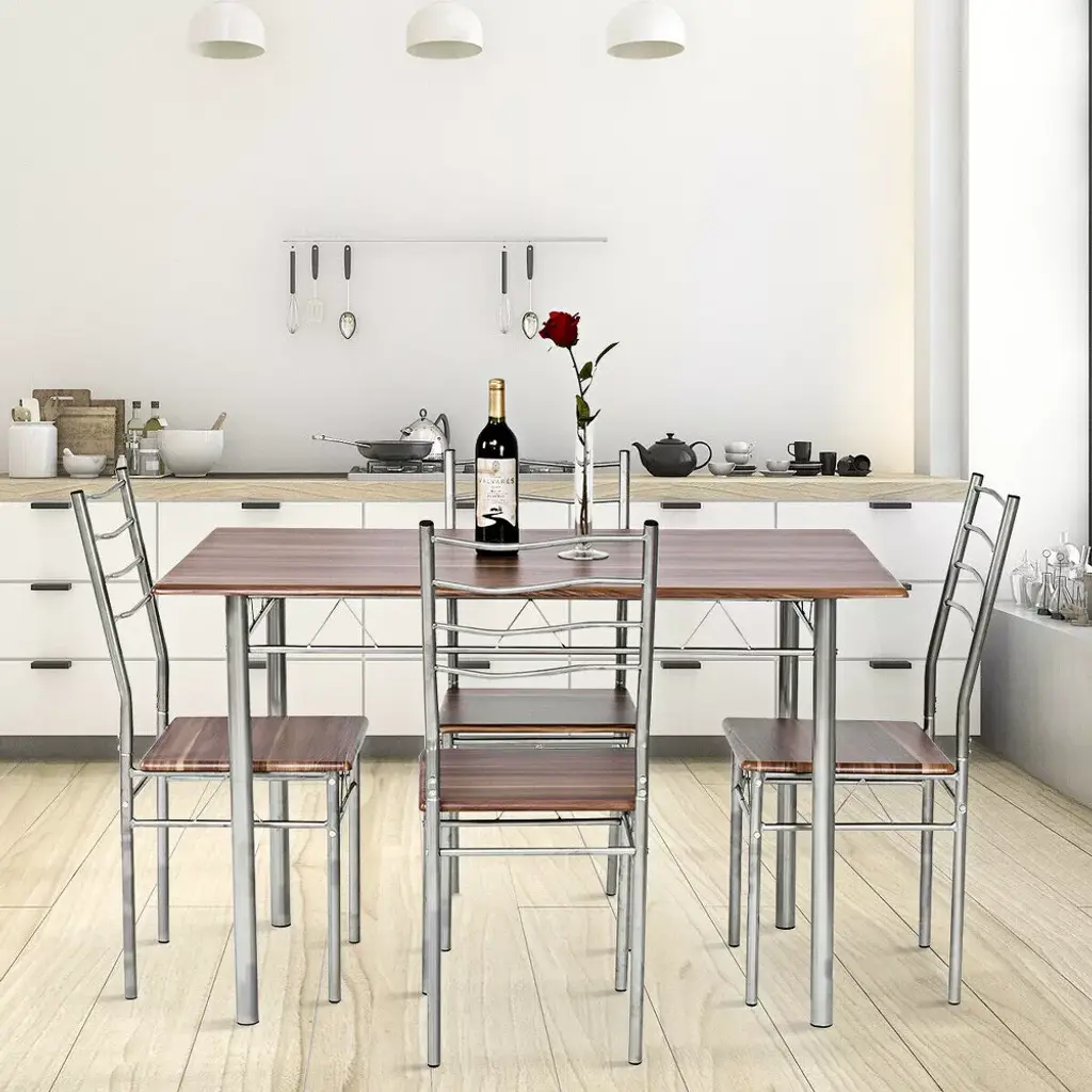 Costway 5 Piece Dining Table Set Wood Metal Kitchen Breakfast Furniture With 4 Chair Walnut