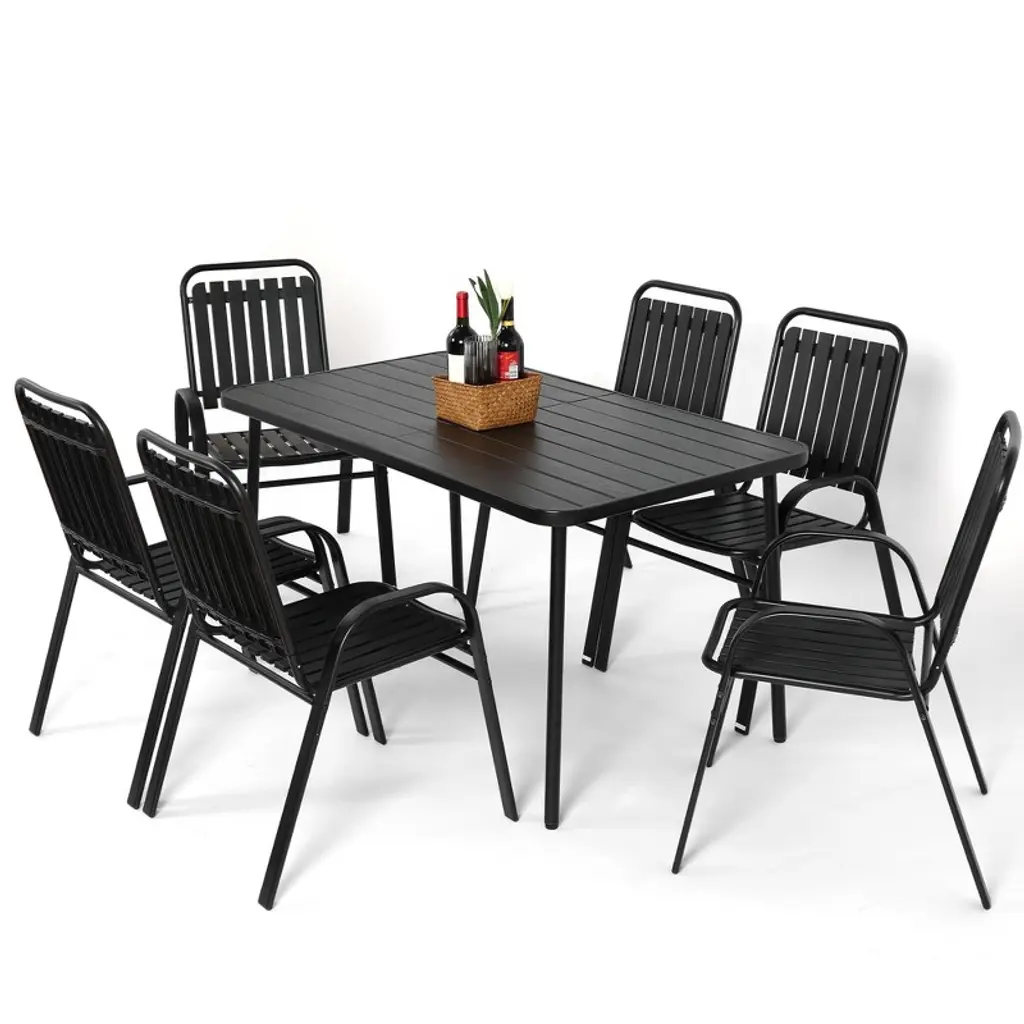 This is our modern and beautiful dining table set which is simple and elegant in appearance. Featuring sturdy iron construction, MDF chair seats and desktop, our dining table is sturdy and stable enough to withstand years of use. It can be widely used as a dining table to enjoy meals, or for other occasions:garden, picnic, party, play card games etc. Classical 1 table and 4 chairs in one set with large load capacity to greatly suit your needs, high quality at great price.Don't hesitate to buy it now! It will never fail your expectationFeaturesSold by set, includes a table and 4 chairs Simple and elegant in appearanceMetal frame, sturdy and stable enough to withstand years of useLarge load capacity for table and chairsEasy to demount and installMulti-use as a dining table for eating or a garden table set for picnic, party etcMaterial:Metal Tube + MDF Net Weight:54.8 lbs Table size:47.5"Lx27.5"Wx29.5"H Chair size:15"Lx17.5"Wx34.5"H Table Weight Capacity:176 Lbs Chair Weight Capacity:220 Lbs Package Includes: 1 X Dining Table 4 X Chairs