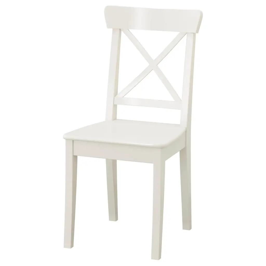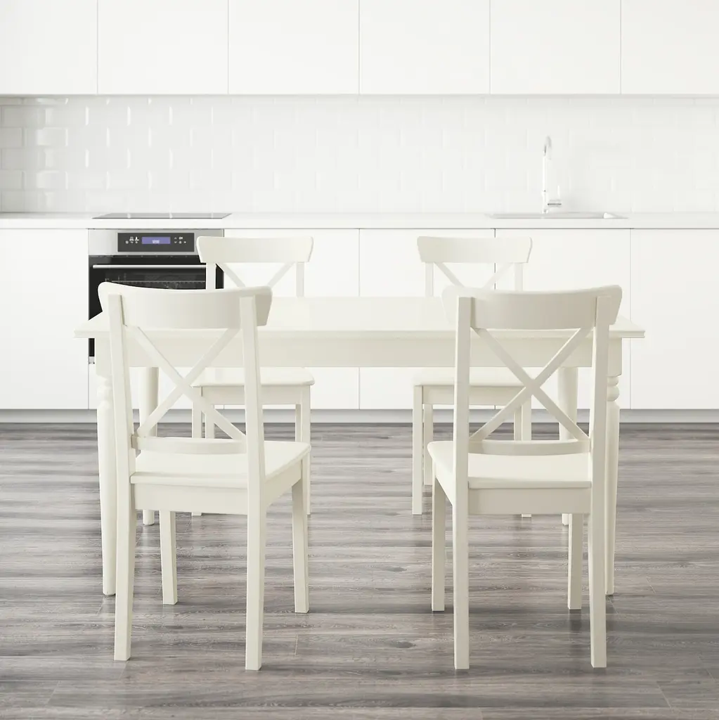 INGATORP / INGOLF Table and 4 chairs - white 61/84 5/8 ". Solid wood is a durable natural material. The clear-lacquered surface is easy to wipe clean. Can be easily extended by one person. The extra leaf can be stored within easy reach under the table top when not in use.