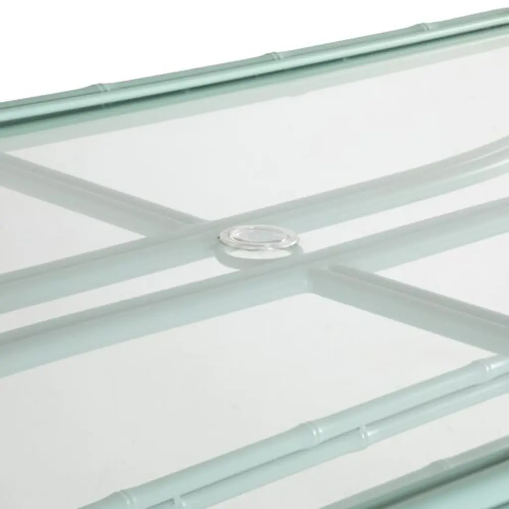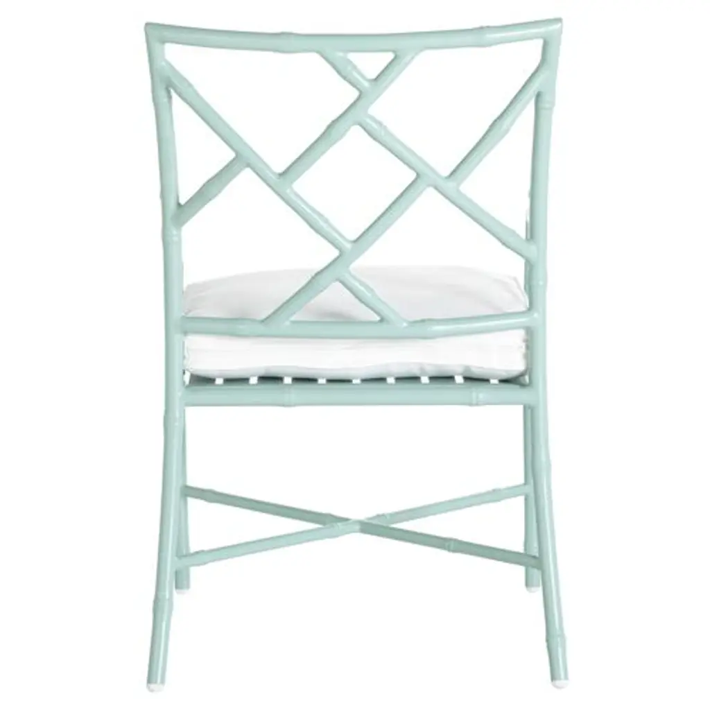 Designed in collaboration with Celerie Kemble exclusively for One Kings Lane: Offering a modern update on classic Chinese Chippendale designs, this outdoor dining set consists of a rectangular table, two armchairs, and four side chairs, along with seat cushions upholstered in performance fabric. The white cushions provide a crisp contrast to the glossy celadon finish of the furniture.Also of note:• The easy-to-clean cushion covers are colorfast, mold-resistant, and soil-resistant. • The tempered-glass tabletop has a center cutout to accommodate an umbrella. • The durable frames are crafted of wrought aluminum with interior wall supports and galvanized steel inserts, triple-hand-polished 360-degree welds, and a powder-coated finish.• We recommend protecting this set with an outdoor cover during inclement weather.