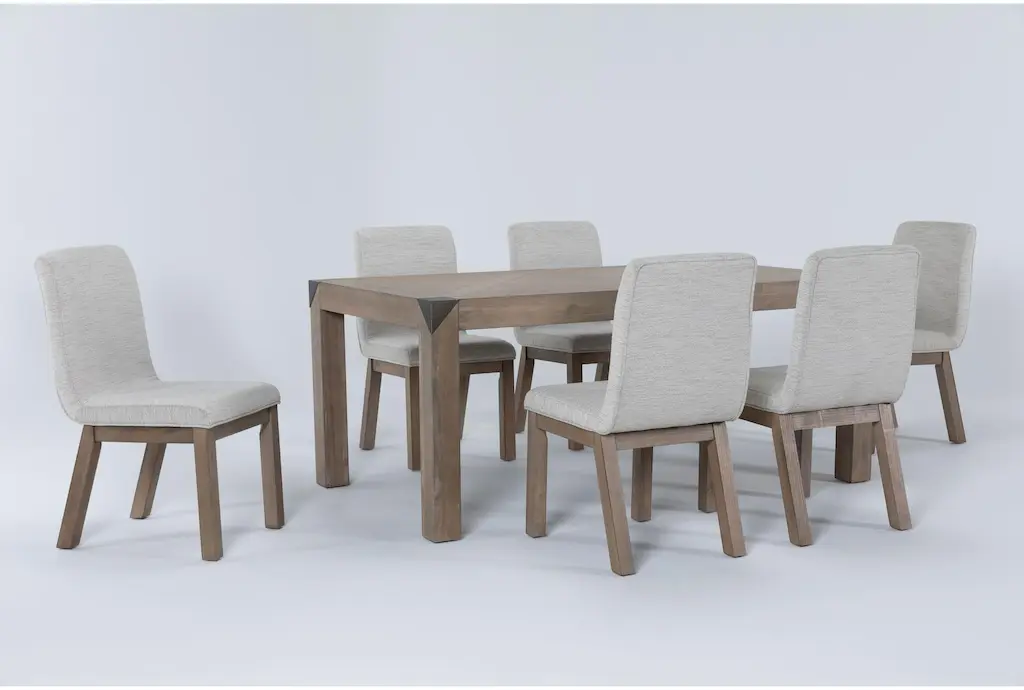 Luis Natural Rectangular Wood 72-90" Extendable Dining Table With Upholstered Chair Set For 6 | Acacia | Parsons