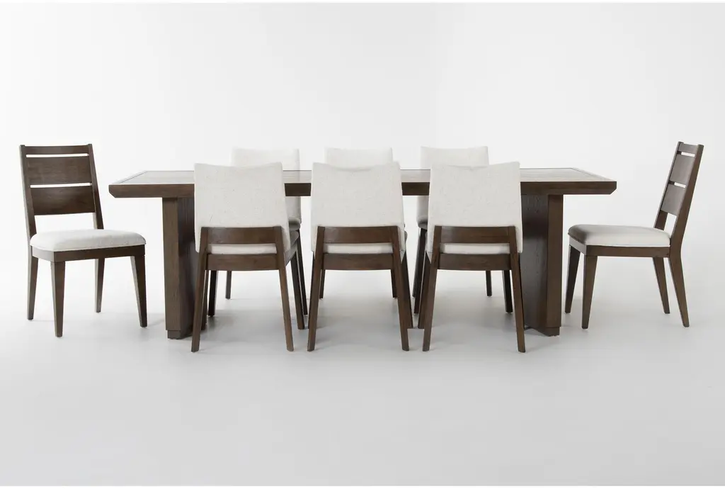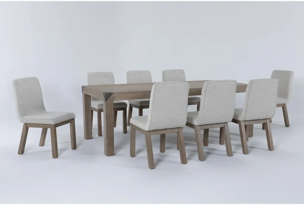 Luis Natural Rectangular Wood 72-90" Extendable Dining Table With Upholstered Chair Set For 8 | Acacia | Parsons