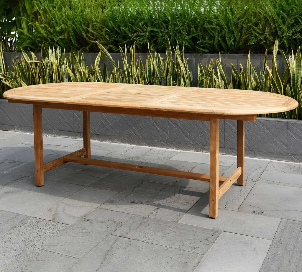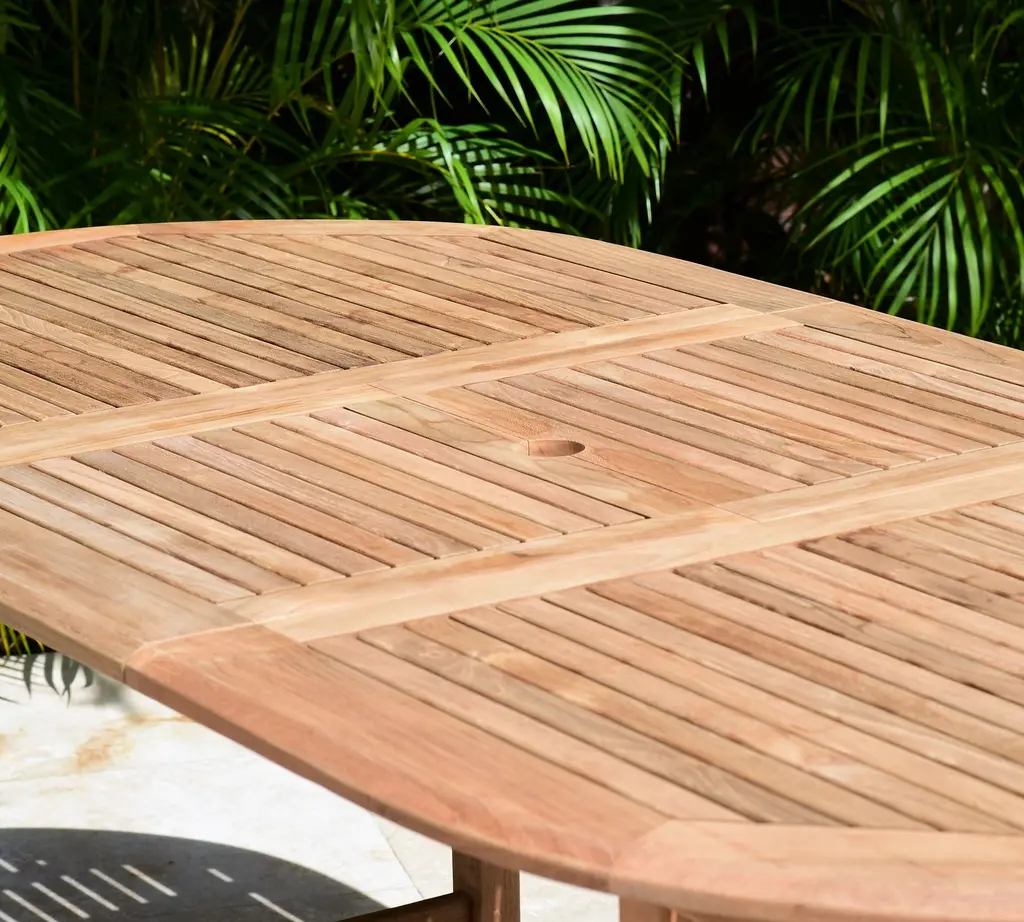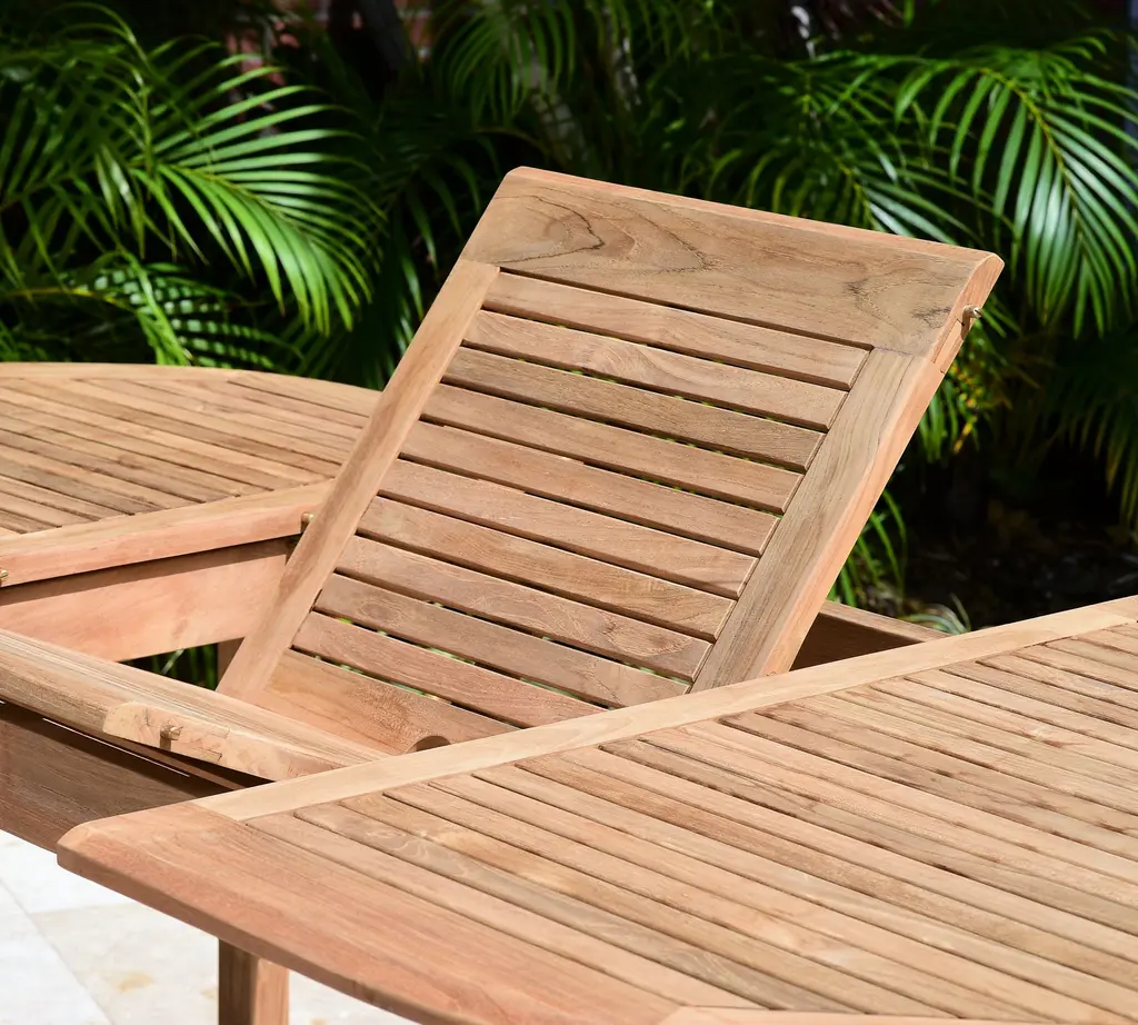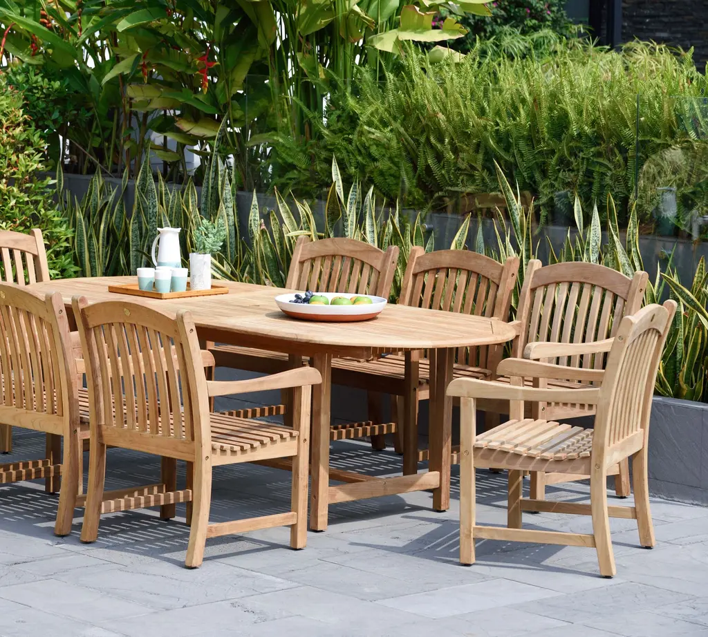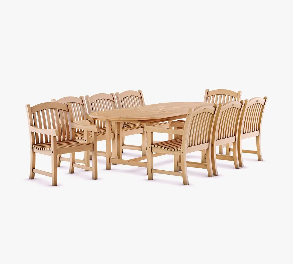 Set includes 1 Nassau Extending Teak Oval Table (Medium 71"-95") and 8 Placid Armchairs.
