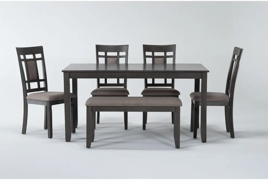 Paige Grey Rectangular Wood 60" Kitchen Dining Table With Bench + Side Chairs Set