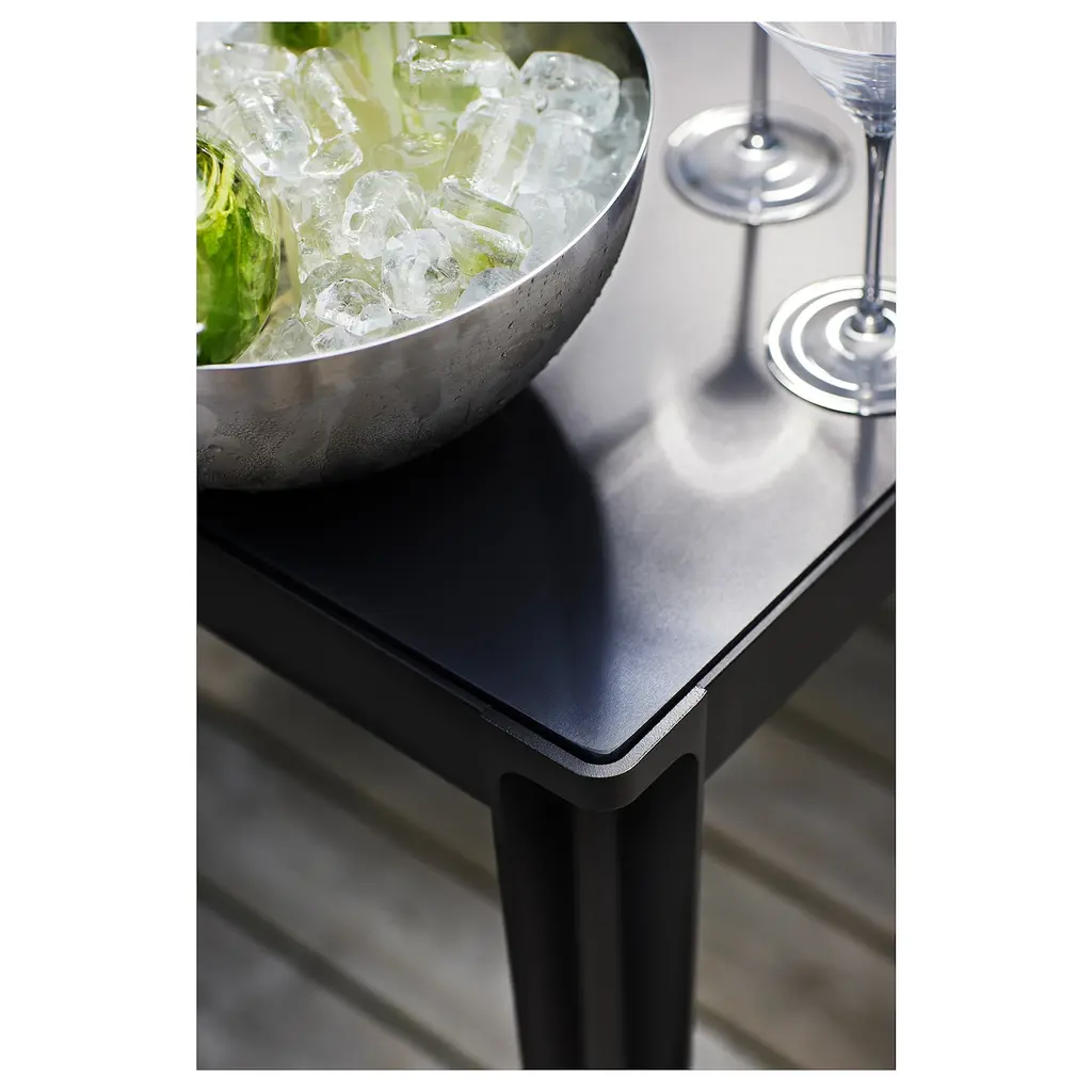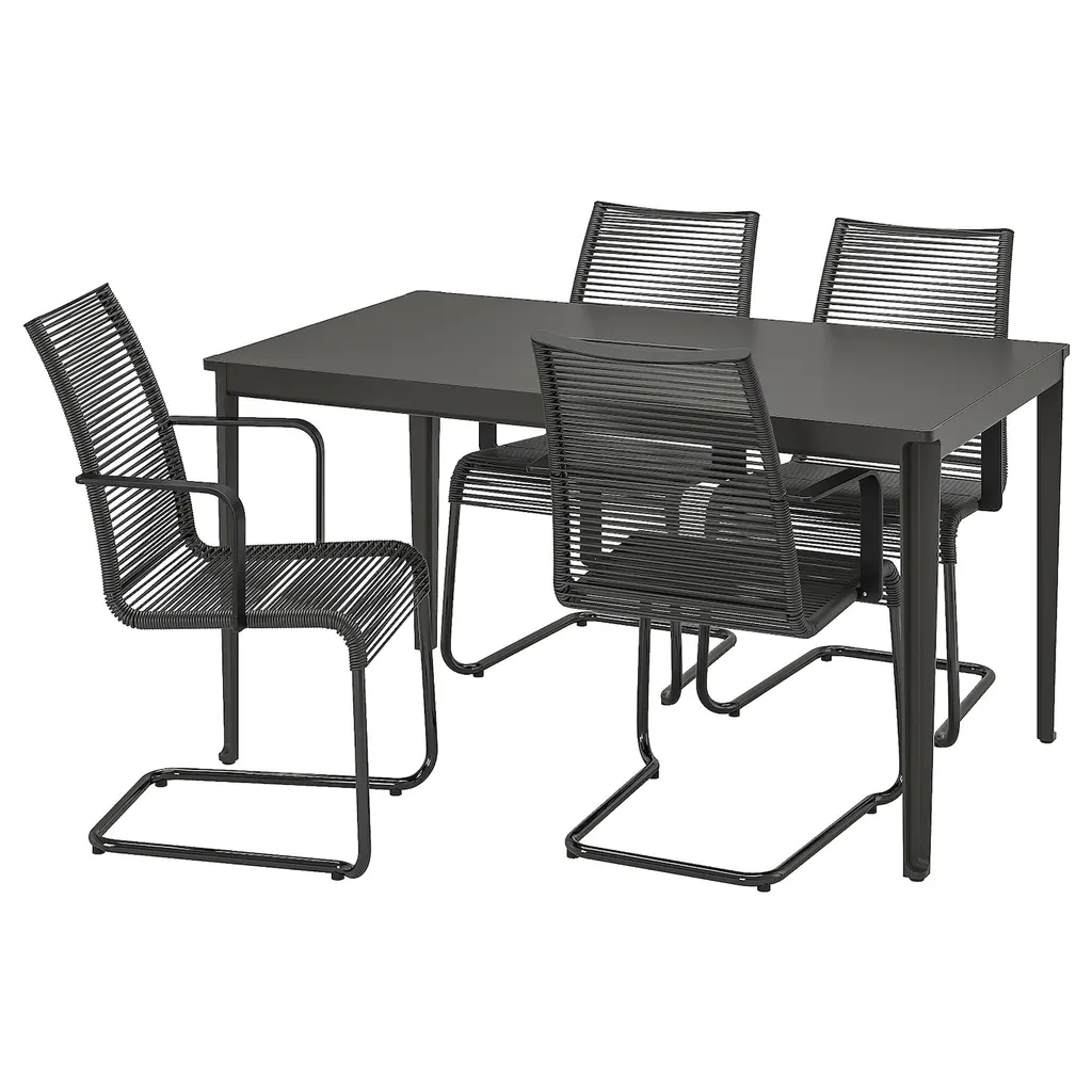 TEGELÖN / VÄSMAN Table and 4 armchairs, outdoor - dark gray/black/black.