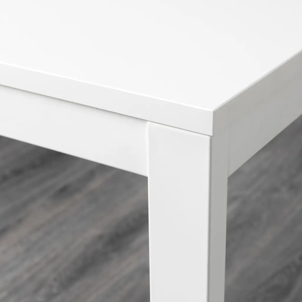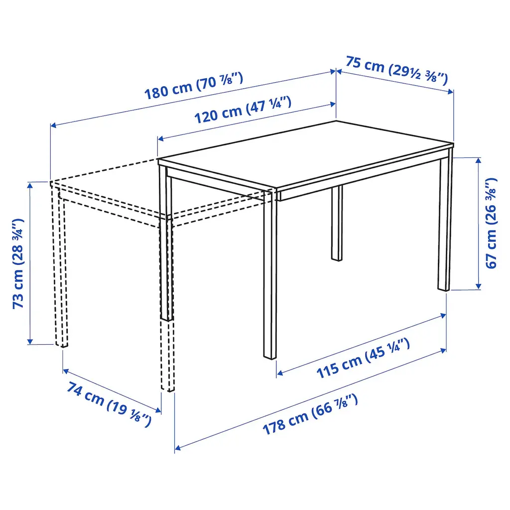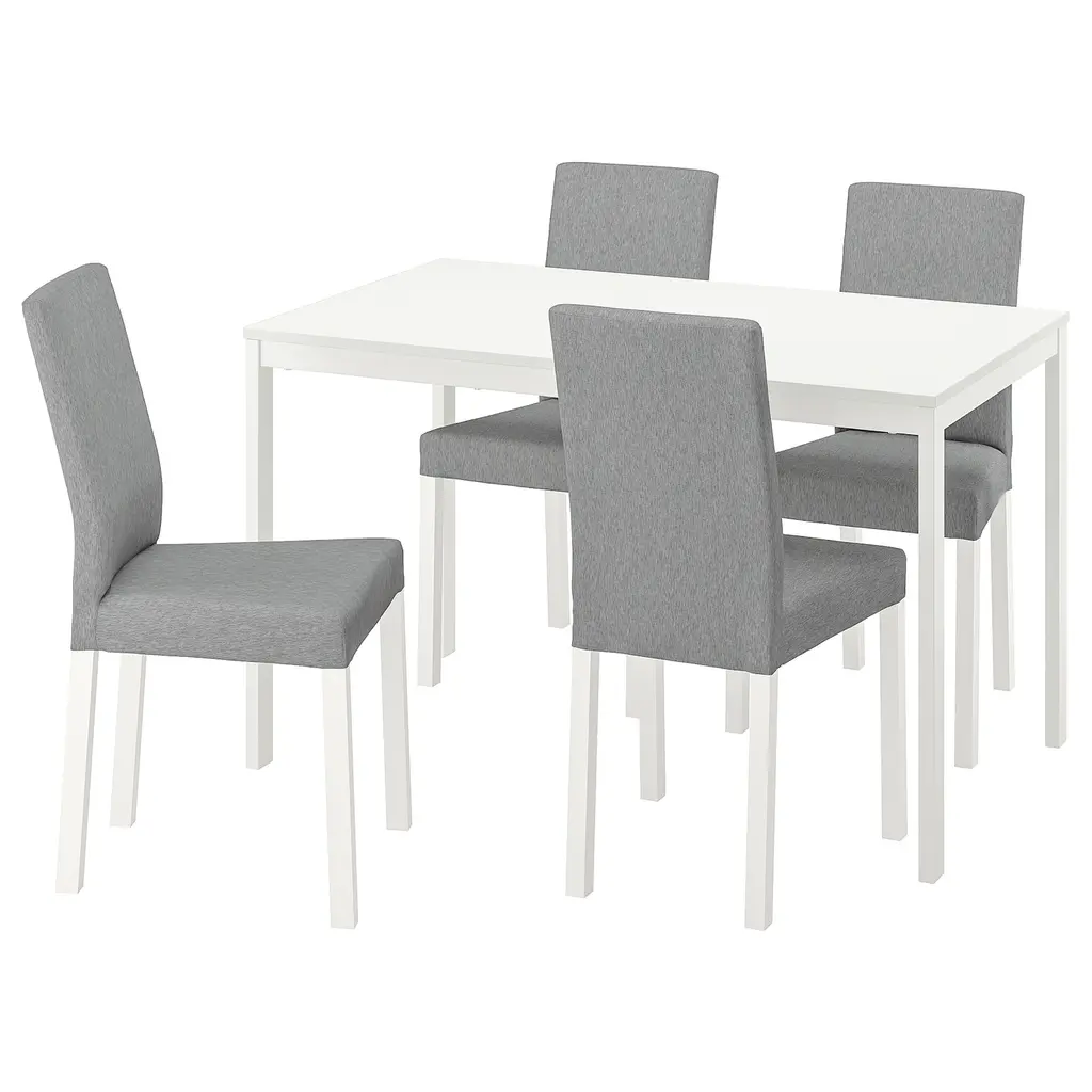 VANGSTA / KÄTTIL Table and 4 chairs - white/Knisa light gray 47 1/4/70 7/8 ". This 4-seat table can easily be extended into a 6-seat table using the included self-storing leaf. The melamine table top is moisture resistant, stain resistant and easy to keep clean. Recommended for indoor use only.