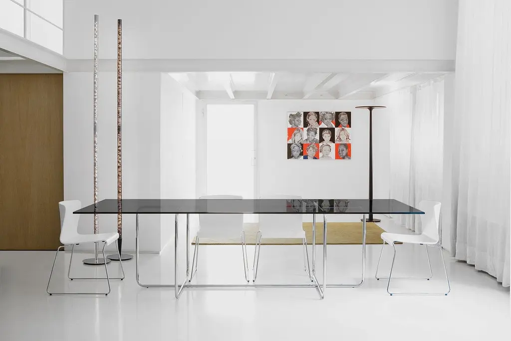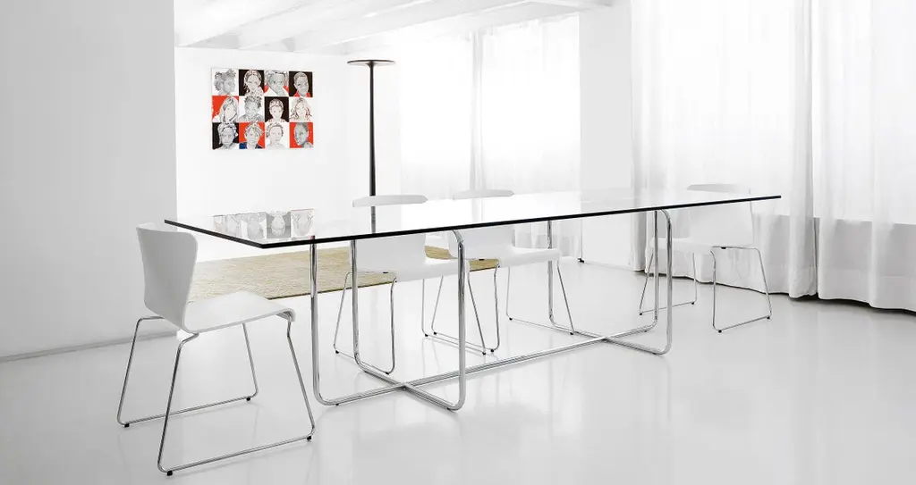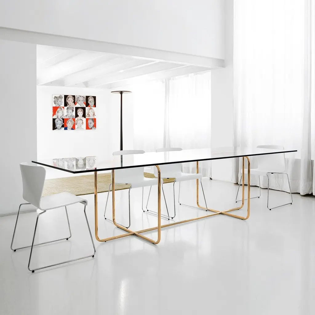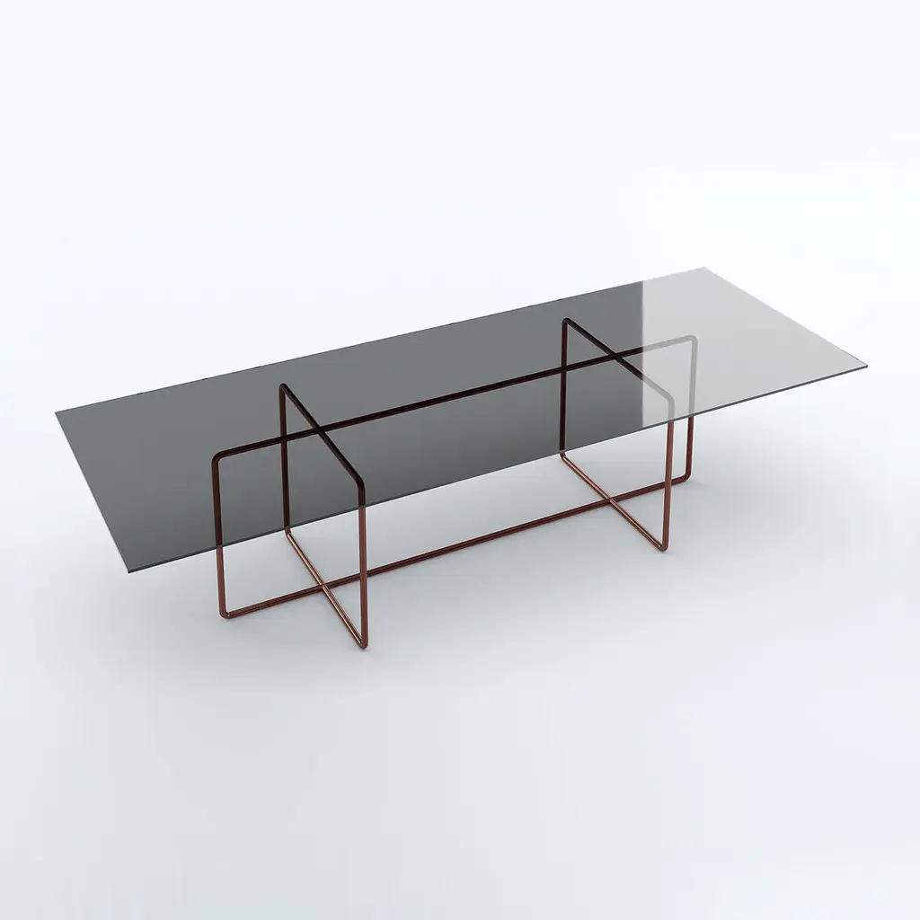 002.09 XP Crystal Dining Table by spHausDesigned by Filippo Dell'OrtoDimensions: D 105 x W 280 x H 74.3 cm.Materials: Steel, clear crystal.The table is made of steel tubular frame and the top is tempered clear crystal top. The top can be also in smoked or bronzed transparent glass variants.The steel frame is galvanized in black nickel, copper, and bronze or powder coated in several RAL colors.spHaus is an Italian company producing high-end contemporary indoor and outdoor design furniture.