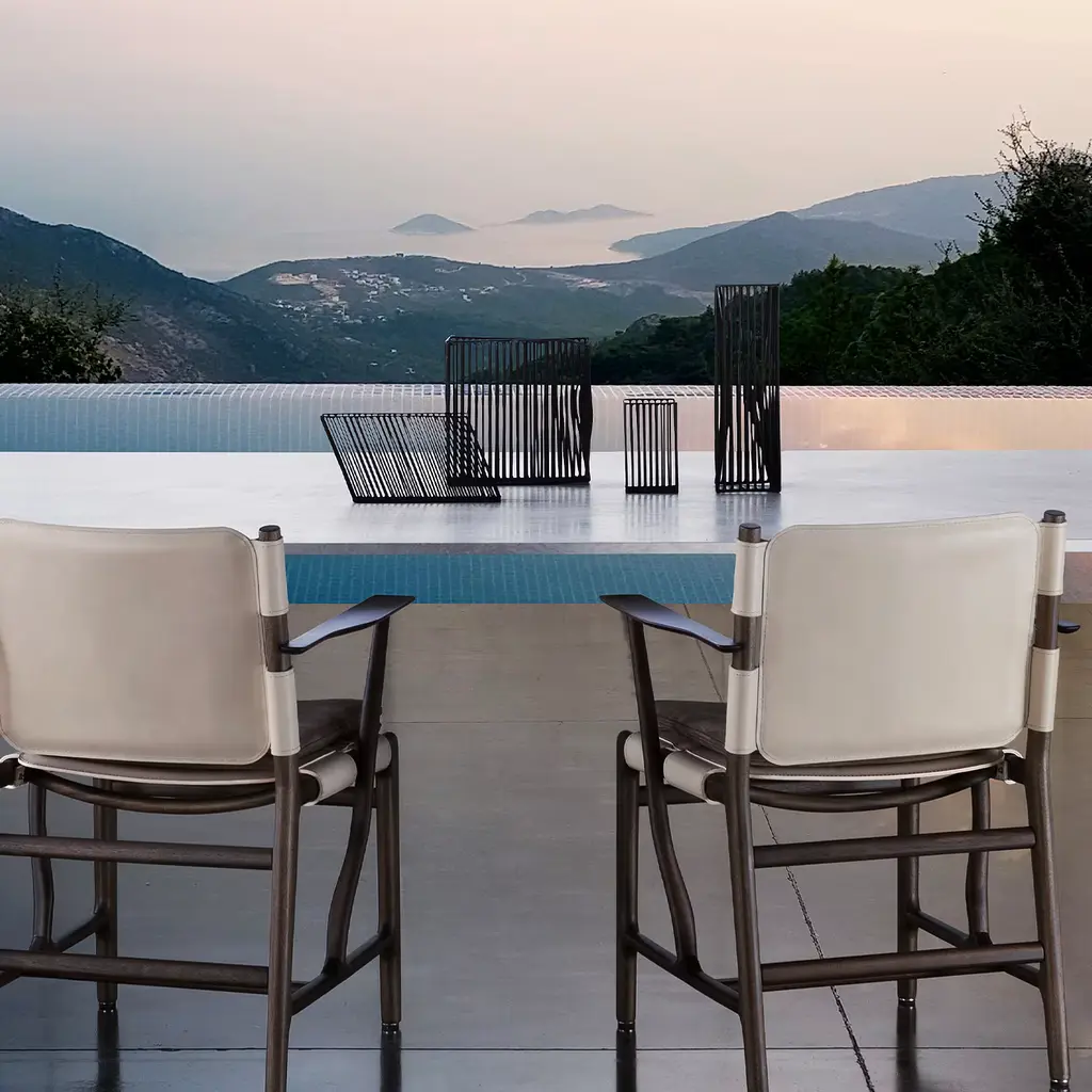 A stupendous luminous design by Massimo Castagna, this gorgeous dining table is reminiscent of a classic monumental piece. Entirely handcrafted of white marble, it plays with lines and thicknesses showcasing a minimalist flair. The thin top rests on fascinating and sleek teardrop-shaped legs, enhanced with rounded corners. Perfect for both indoor and outdoor areas. Recommended to cover with a protective upholstery if left outside, please ask the Concierge for details. If the products are placed completely outside, nightcovers that can be purchased at an extra price are recommended. Please contact the Concierge for further information and options.