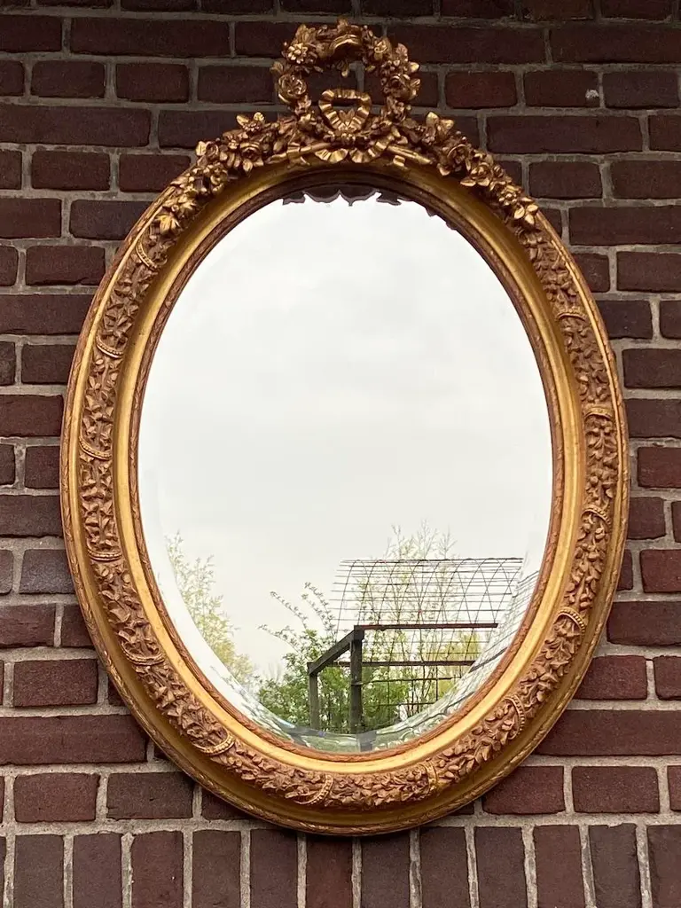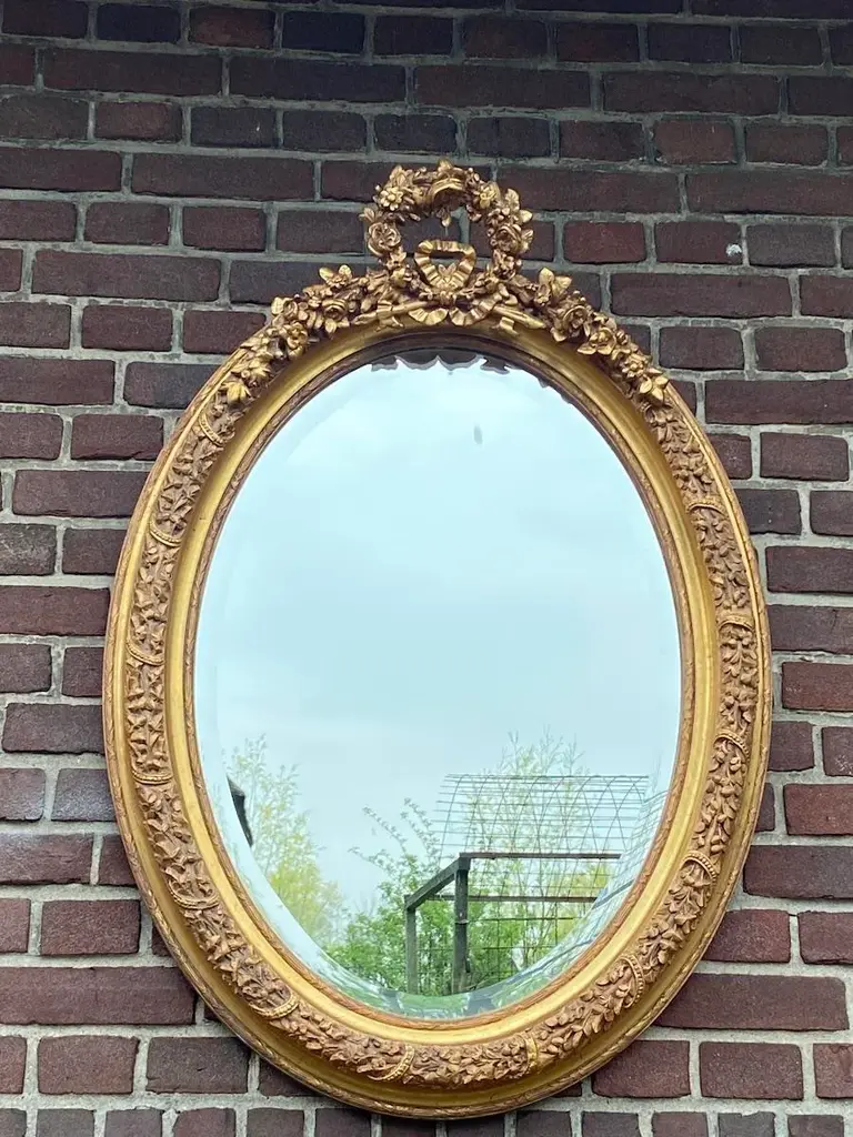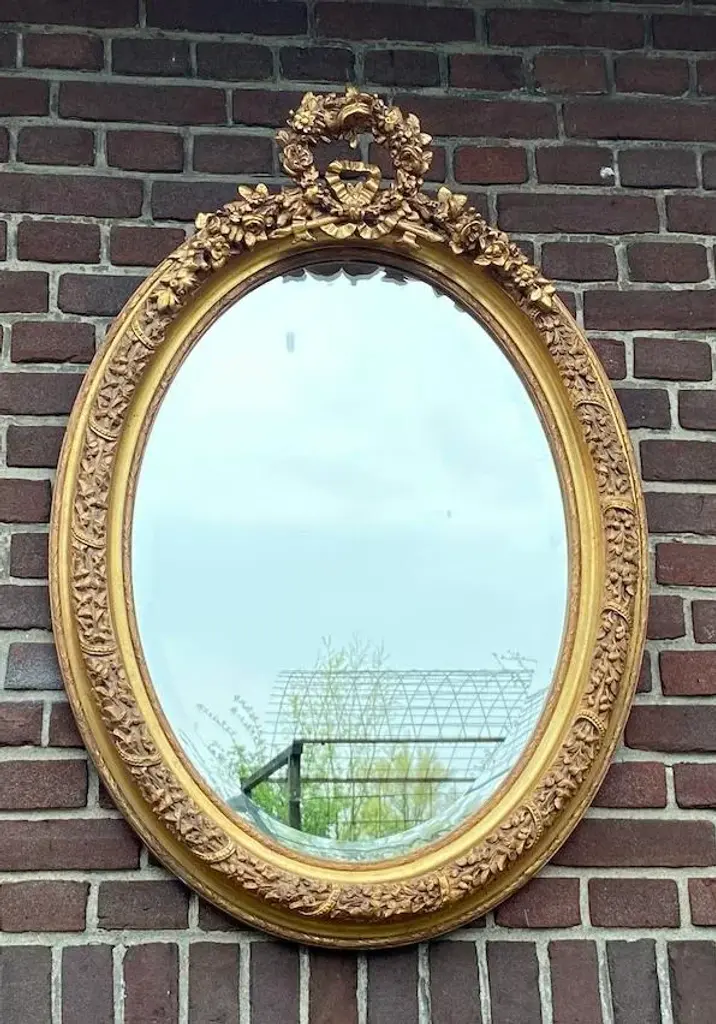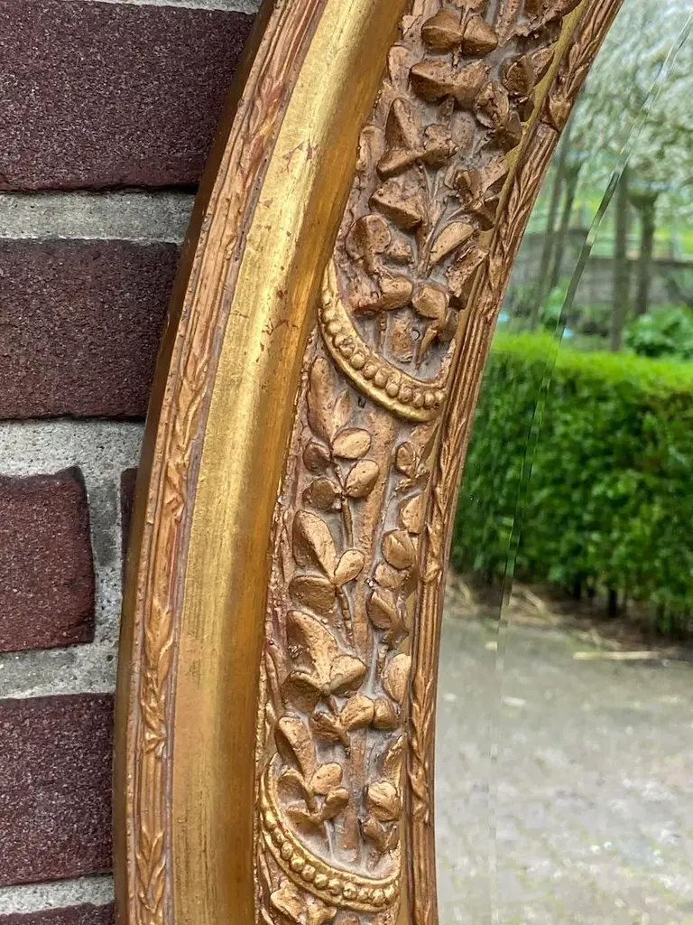 Bring refined European elegance to your home with this pair of vintage French Louis XVI–style wall mirrors, handcrafted in France during the 1980s. Carved from solid beechwood and finished with hand-applied antique gold leaf, these mirrors combine the ornamentation of Baroque, the curves of Rococo, and the balance of neoclassicism, making them both decorative and functional works of art. ✨ Artisan Craftsmanship & Design ✔ Solid Beechwood Construction Frames carved from durable beechwood for strength and fine detail. Hand-applied antique gold leaf gives a warm, opulent glow. ✔ Exquisite Carved Detailing Features floral carvings and a crown of flowers and leaves. A hallmark of traditional European craftsmanship and artistry. ✔ French Louis XVI Elegance Inspired by 18th-century French design traditions. Blends Baroque richness and Rococo fluidity with classic proportions. Dimensions (Each Mirror, Approximate) Height: 90 cm / 35 in Width: 67 cm / 26 in Depth: 10 cm / 4 in Perfectly scaled to display as a matched pair or use individually in different rooms. ✅ Condition Very good vintage condition with minimal wear consistent with age. Gold leaf finish freshly renewed, highlighting carved details. Mirror glass remains clear and structurally stable. Note: Differences in color visible in the photographs are caused by natural outdoor light, not variations in the actual finish. Shipping & Packaging Professionally packed with protective materials. Fully tracked and insured delivery for safe arrival. Placement Ideas Living Room: Above a fireplace, console, or sideboard. Entryway: Flank an entry table for a grand welcome. Bedroom: As elegant accents above dressers or on side walls. Dining Room: Add drama and reflect candlelight or chandeliers. Why This Pair Stands Out ✔ Authentic 1980s French craftsmanship in solid beechwood ✔ Hand-applied antique gold leaf finish ✔ Decorative Baroque/Rococo carvings with floral crown details ✔ Offered as a pair of two mirrors for symmetry and impact ✔ Distinctive pieces that function as both mirrors and art This pair of French Louis XVI–style wall mirrors offers a stunning blend of historic design, rich gilding, and intricate carving. Whether displayed together for symmetry or separately for balance across rooms, they bring timeless sophistication and European artistry to any interior.