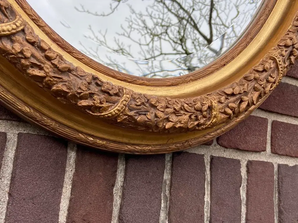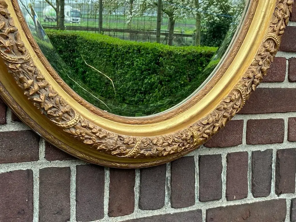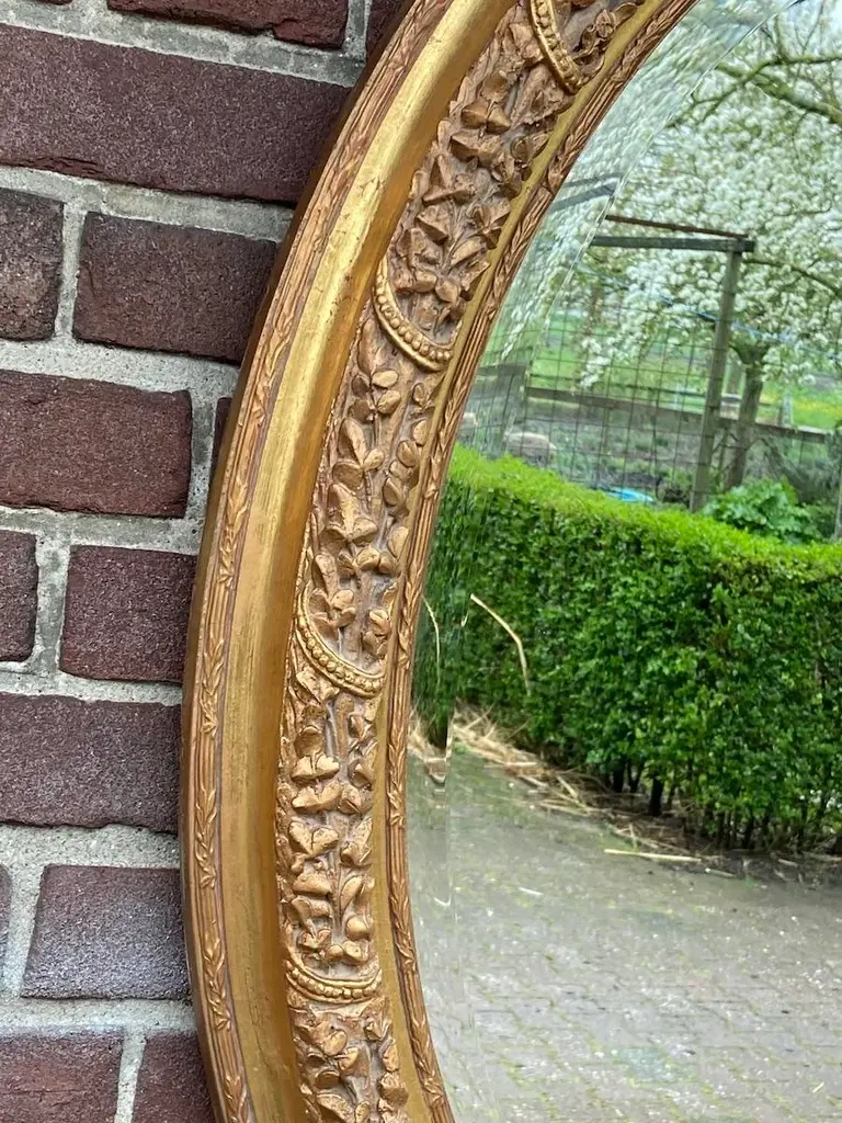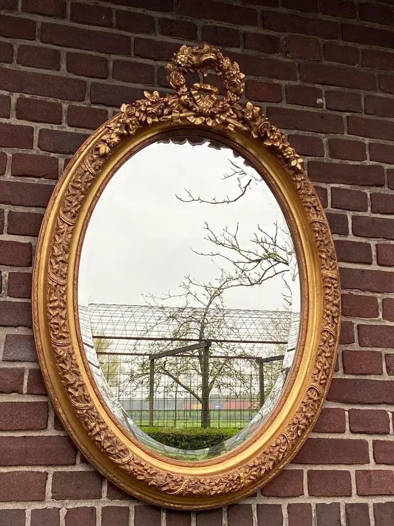Bring refined European elegance to your home with this pair of vintage French Louis XVI–style wall mirrors, handcrafted in France during the 1980s. Carved from solid beechwood and finished with hand-applied antique gold leaf, these mirrors combine the ornamentation of Baroque, the curves of Rococo, and the balance of neoclassicism, making them both decorative and functional works of art. ✨ Artisan Craftsmanship & Design ✔ Solid Beechwood Construction Frames carved from durable beechwood for strength and fine detail. Hand-applied antique gold leaf gives a warm, opulent glow. ✔ Exquisite Carved Detailing Features floral carvings and a crown of flowers and leaves. A hallmark of traditional European craftsmanship and artistry. ✔ French Louis XVI Elegance Inspired by 18th-century French design traditions. Blends Baroque richness and Rococo fluidity with classic proportions. Dimensions (Each Mirror, Approximate) Height: 90 cm / 35 in Width: 67 cm / 26 in Depth: 10 cm / 4 in Perfectly scaled to display as a matched pair or use individually in different rooms. ✅ Condition Very good vintage condition with minimal wear consistent with age. Gold leaf finish freshly renewed, highlighting carved details. Mirror glass remains clear and structurally stable. Note: Differences in color visible in the photographs are caused by natural outdoor light, not variations in the actual finish. Shipping & Packaging Professionally packed with protective materials. Fully tracked and insured delivery for safe arrival. Placement Ideas Living Room: Above a fireplace, console, or sideboard. Entryway: Flank an entry table for a grand welcome. Bedroom: As elegant accents above dressers or on side walls. Dining Room: Add drama and reflect candlelight or chandeliers. Why This Pair Stands Out ✔ Authentic 1980s French craftsmanship in solid beechwood ✔ Hand-applied antique gold leaf finish ✔ Decorative Baroque/Rococo carvings with floral crown details ✔ Offered as a pair of two mirrors for symmetry and impact ✔ Distinctive pieces that function as both mirrors and art This pair of French Louis XVI–style wall mirrors offers a stunning blend of historic design, rich gilding, and intricate carving. Whether displayed together for symmetry or separately for balance across rooms, they bring timeless sophistication and European artistry to any interior.