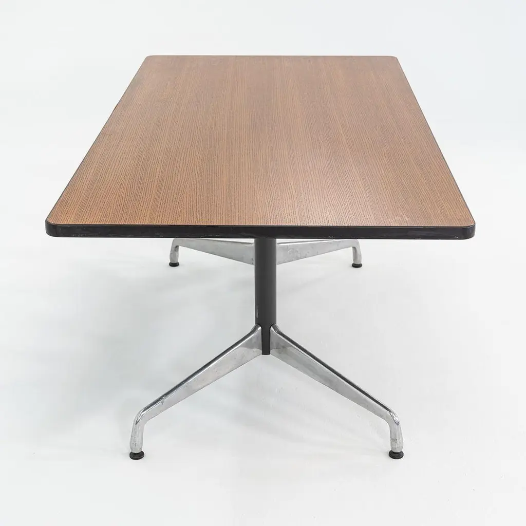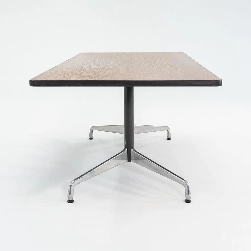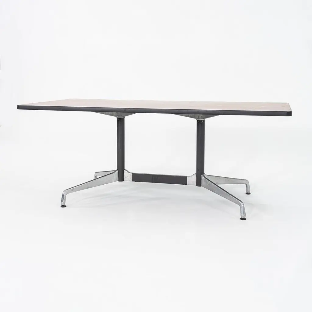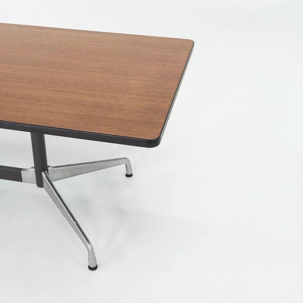 This is a Segmented Conference Dining Table, Model ET143, initially designed by Ray and Charles Eames for Herman Miller in 1964. These particular examples date back to the 1990s. These pieces feature a dark oak veneer rectangular table top with segmented bases that are constructed of steel and aluminum. This was a very popular series from the Eames' and was manufactured for several decades. The listed price includes one table and there are four available to purchase. The table measures 35.25 inches deep, 72.75 inches long, and is 28.5 inches high. The table tops have some light scratches and scuffs, and the bases have some light scuffs as well. Overall, these tables are in very good condition with light wear. Please see photos.