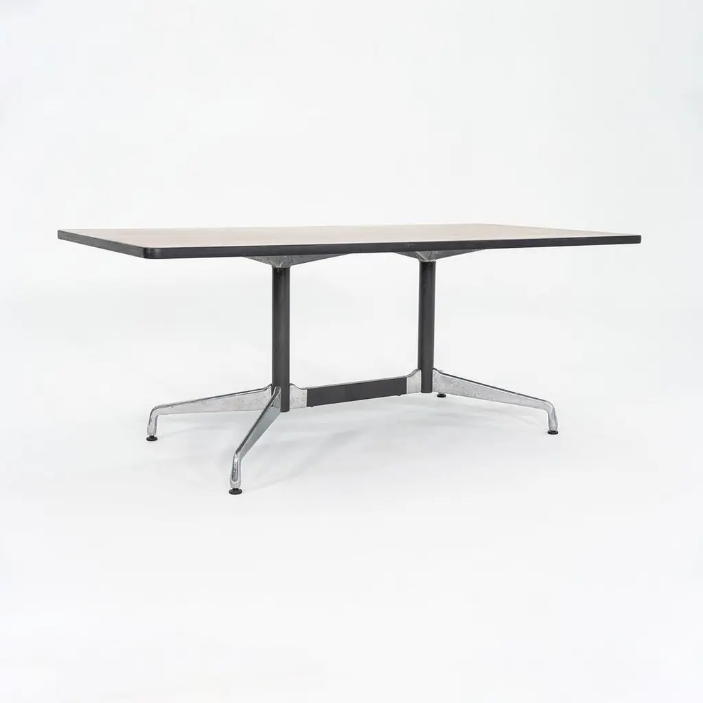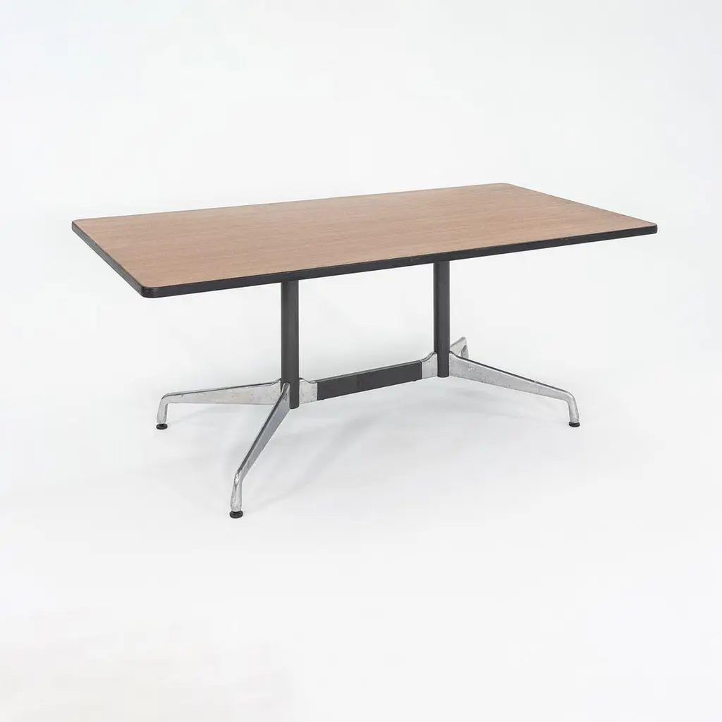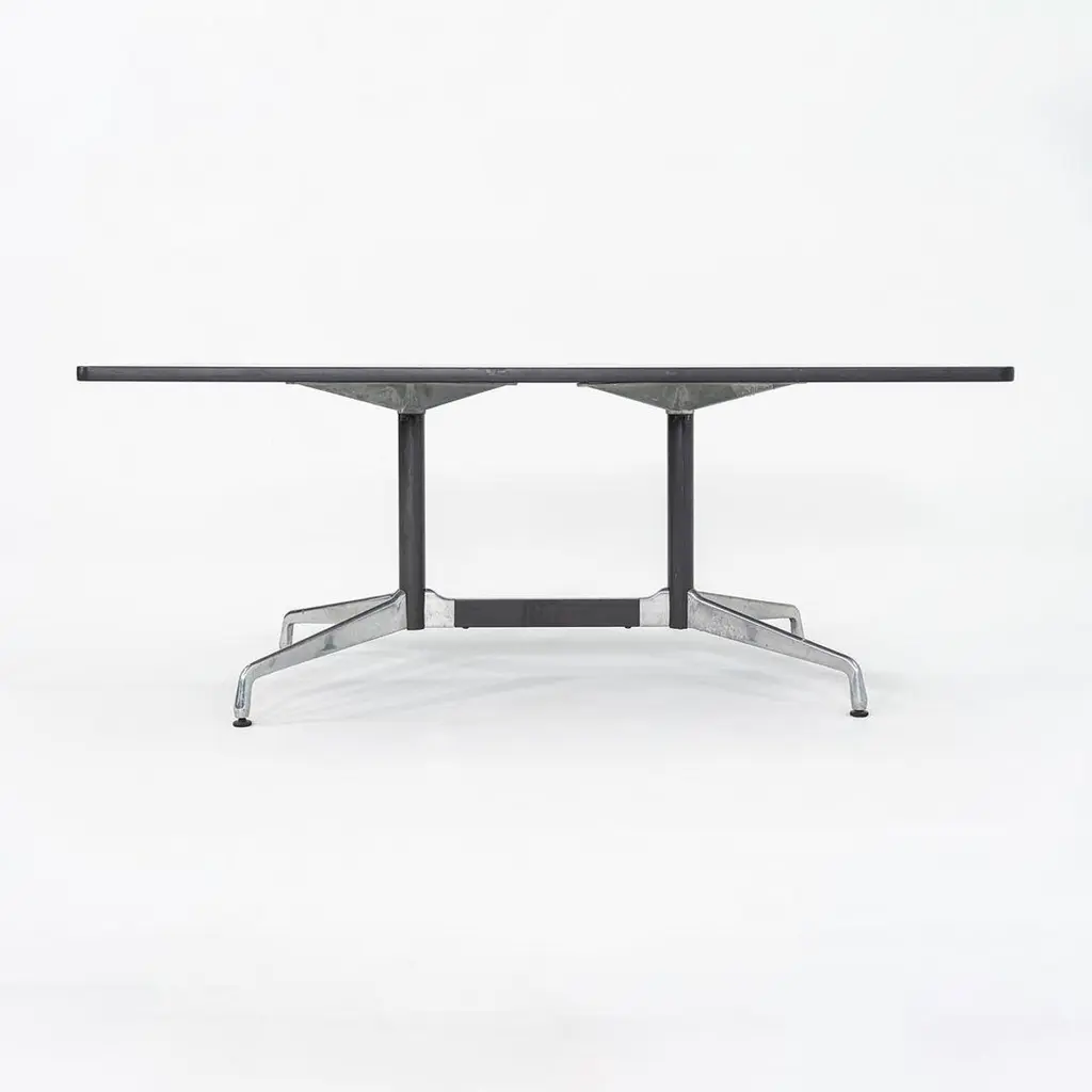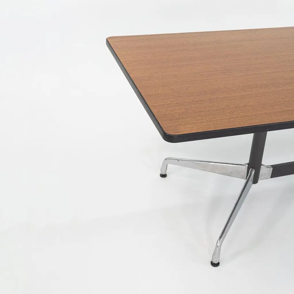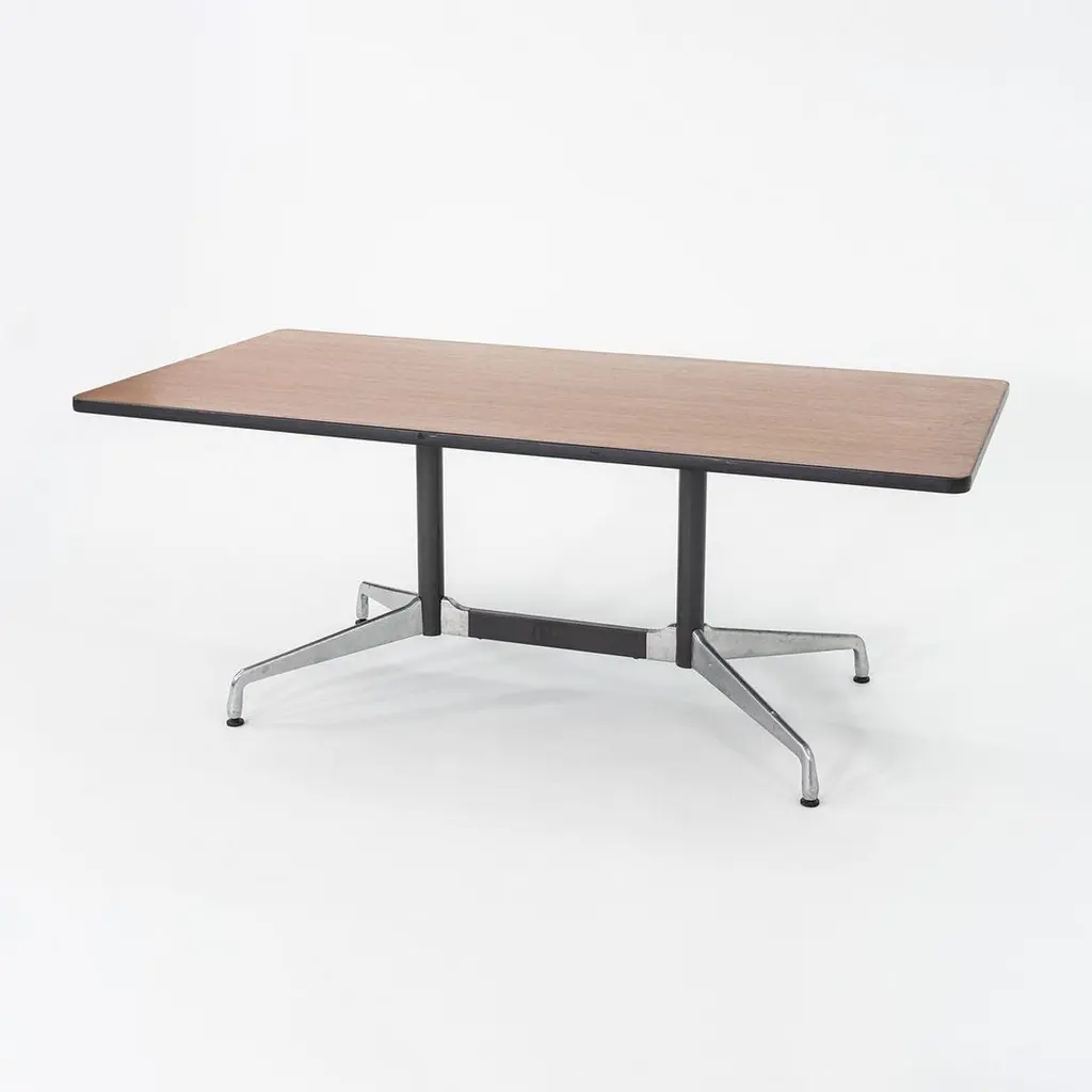 This is a Segmented Conference Dining Table, Model ET143, initially designed by Ray and Charles Eames for Herman Miller in 1964. These particular examples date back to the 1990s. These pieces feature a dark oak veneer rectangular table top with segmented bases that are constructed of steel and aluminum. This was a very popular series from the Eames' and was manufactured for several decades. The listed price includes one table and there are four available to purchase. The table measures 35.25 inches deep, 72.75 inches long, and is 28.5 inches high. The table tops have some light scratches and scuffs, and the bases have some light scuffs as well. Overall, these tables are in very good condition with light wear. Please see photos.