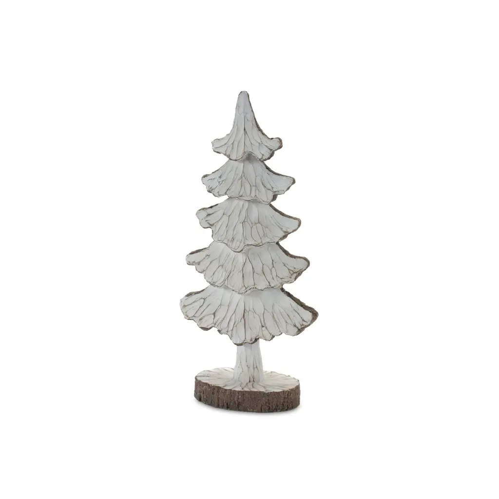 Infuse your holiday decor with a rustic charm using this set of carved pine tree decor! With earthy brown and beige tones, a beautifully carved design, and a faux bark base, it creates a cozy atmosphere of nature and warmth. Perfect for sprucing up your living room or dining area, this set brings a touch of nature to both holiday and everyday decor. Embrace the cozy holiday vibes by getting this set of carved pine tree decor today! Product Features: Set of 2 white and brown Christmas tree tabletop decoration Earthy brown and beige tones Carved wood design with faux bark base Ideal to gift your friends or family members Perfect addition to any Christmas decoration Recommended for indoor use only Dimensions: 13"H x 5.75"W x 3"D 16"H x 6.75"W x 3.75"D Material(s): polyresin Set includes 1 of each item for a total of 2 item