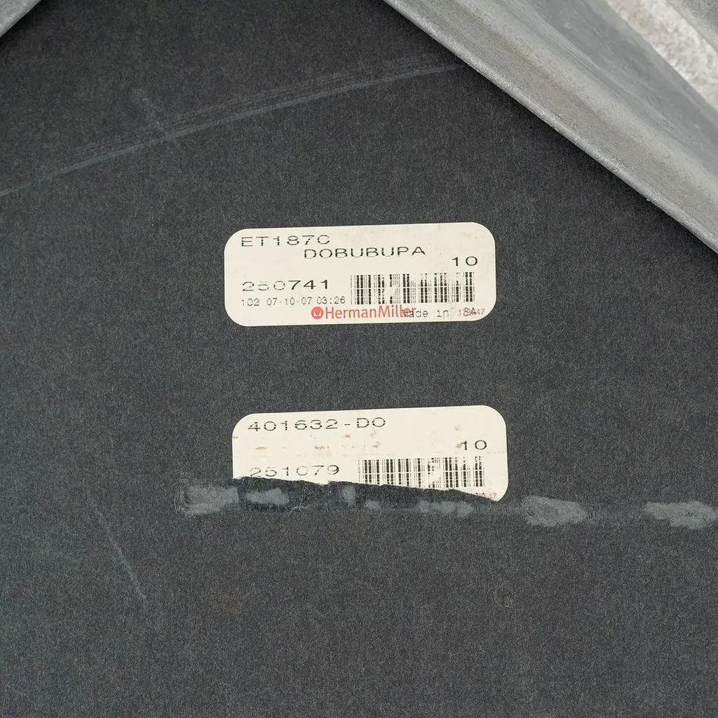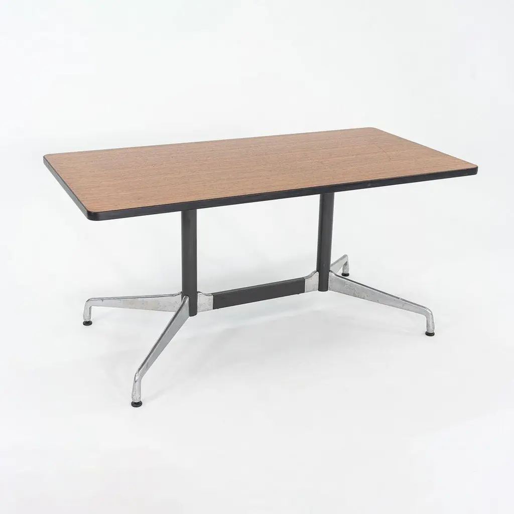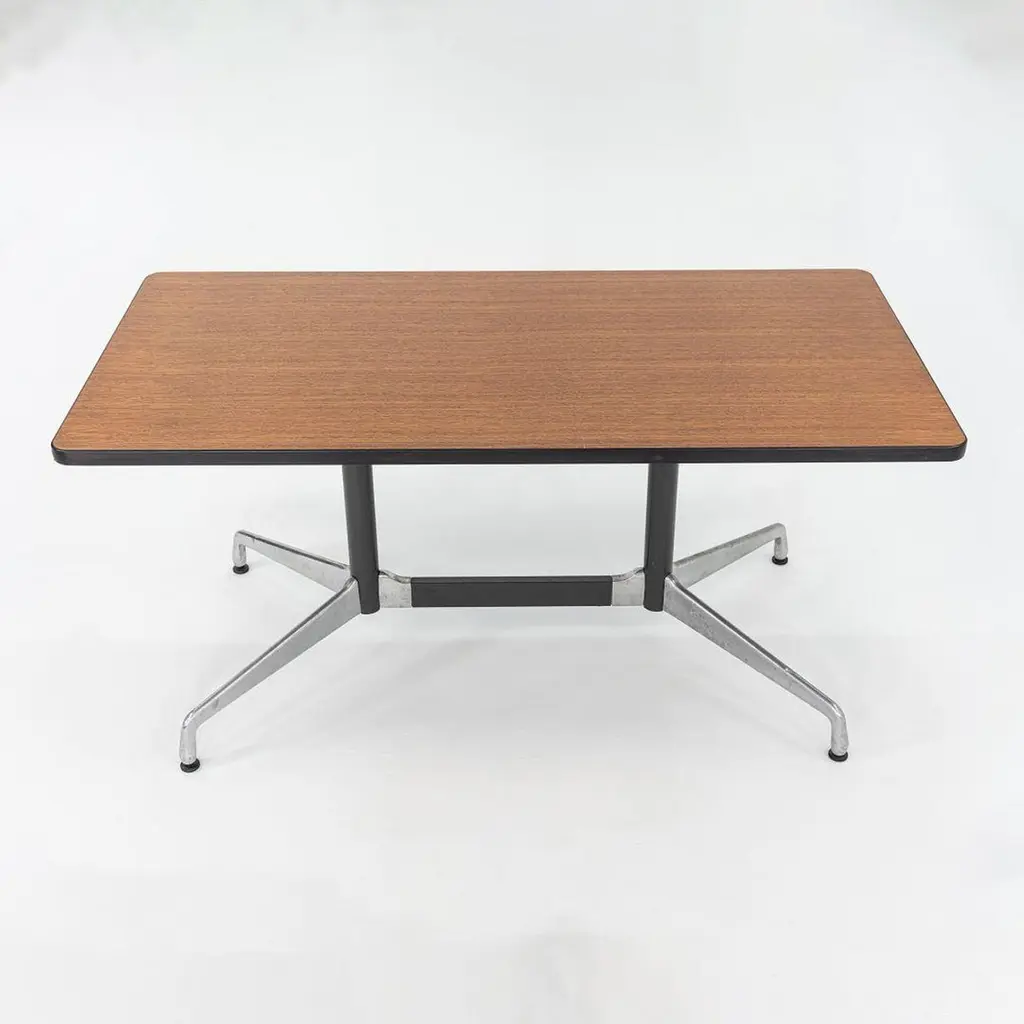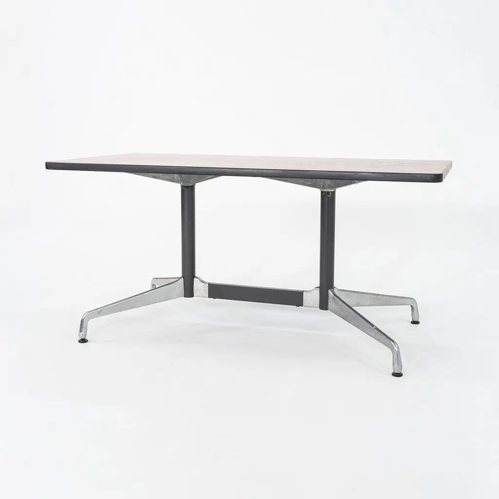 This is a Segmented Conference Dining Table, Model ET187, initially designed by Ray and Charles Eames for Herman Miller in 1964. These pieces date to the year 2007. They feature a rectangular table top made of dark oak with segmented bases that are constructed of steel and aluminum. This was a very popular series from the Eames' and was manufactured for several decades. The listed price includes one table and we have more than 12 available to purchase. Each table measures 30 inches deep, 60.25 inches long, and is 28.5 inches high. The dark oak tops have some light scratches and scuffs, and the bases have some light scuffs as well. Overall, these tables are in very good condition with light wear. Please see photos.