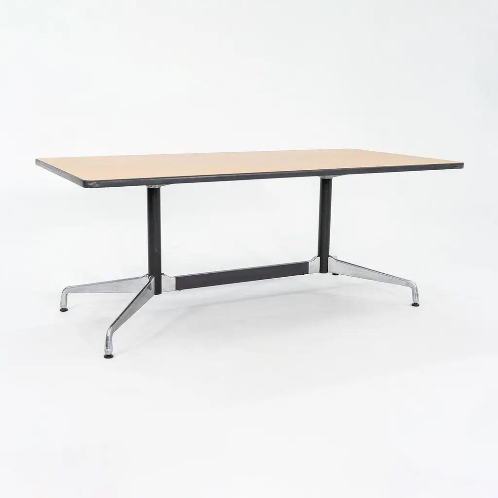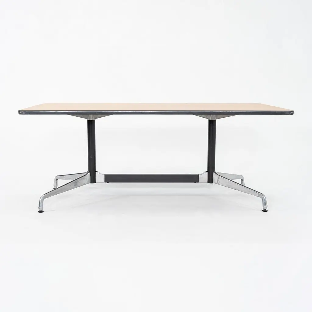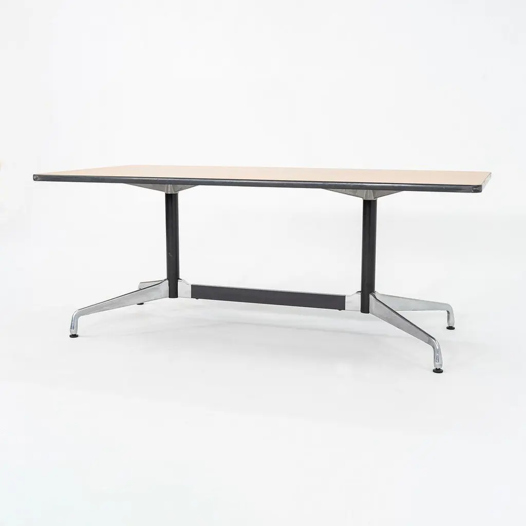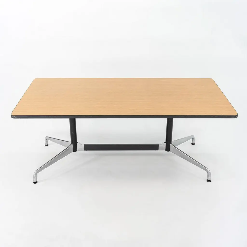 This is a Segmented Conference Dining Table, Model ET143, initially designed by Ray and Charles Eames for Herman Miller in 1964. These pieces date to the year 2008. They feature a rectangular table top made of light oak with segmented bases that are constructed of steel and aluminum. This was a very popular series from the Eames' and was manufactured for several decades. The listed price includes one table and we have three available to purchase. Each table measures 35.25 inches deep, 71.5 inches long, and is 28.5 inches high. The oak tops have some light scratches and scuffs, and the bases have some light scuffs as well. Overall, these tables are in very good condition with light wear. Please see photos.