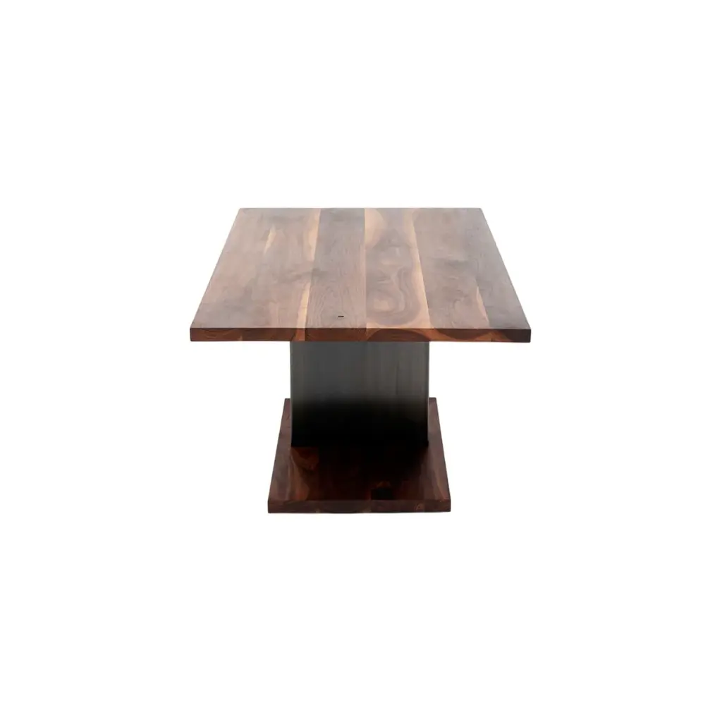 The 2020 Dining Table from Artless exemplifies refined contemporary design with a solid walnut tabletop finished in oil-rubbed warmth, creating an inviting atmosphere for dining and conversation. Its sturdy base combines solid oak and matte steel, ensuring durability while maintaining a sleek profile. This modern reinterpretation of the pedestal table offers clean lines and expert craftsmanship, making it an ideal centerpiece for sophisticated dining rooms or open-plan spaces. Highlight