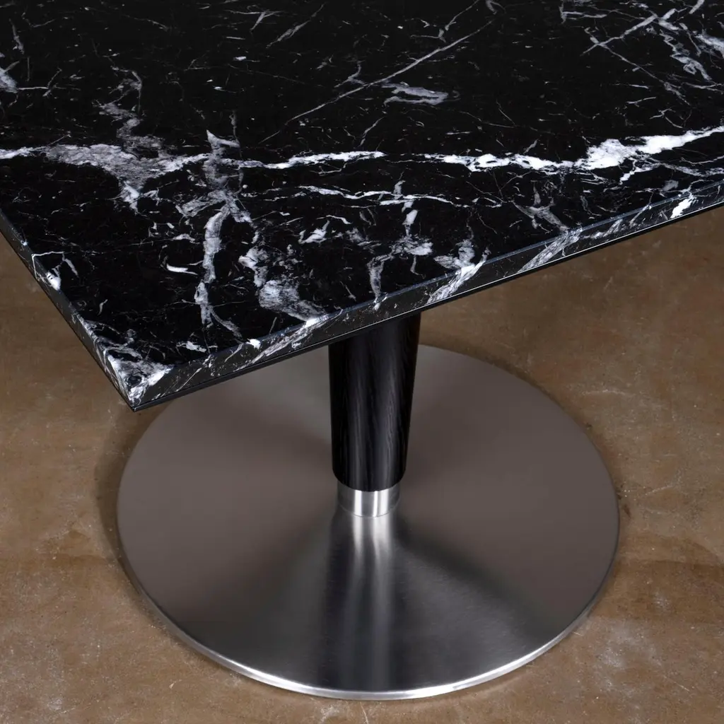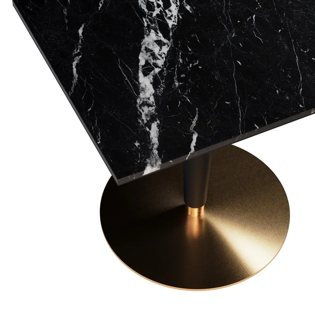 Located in Georgia, Atlanta is the home of more than thirty-nine skyscrapers. Constructed in the '90s, the Bank of America Plaza is the tallest building in the city. Designed by the architectural firm Kevin Roche John Dinkeloo and Associates LLC, it is postmodern-inspired reminiscent of Art Deco. Transpiring emotion through a design recreation, Porus Studio designers conceived the contemporary Atlanta Dining Table. For more relaxed and contemporary commercial projects, small dining tables look good while saving space. Impress your guests with the modern Atlanta Dining Table features an Nero Marquina marble top, accomplished with a black lacquered under top supported by a black ashwood and brushed brass feet. This modern dining table will make every meal a stylish dining experience with its beautifully crafted.