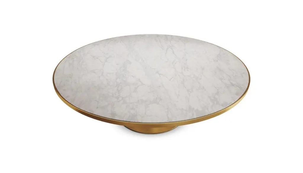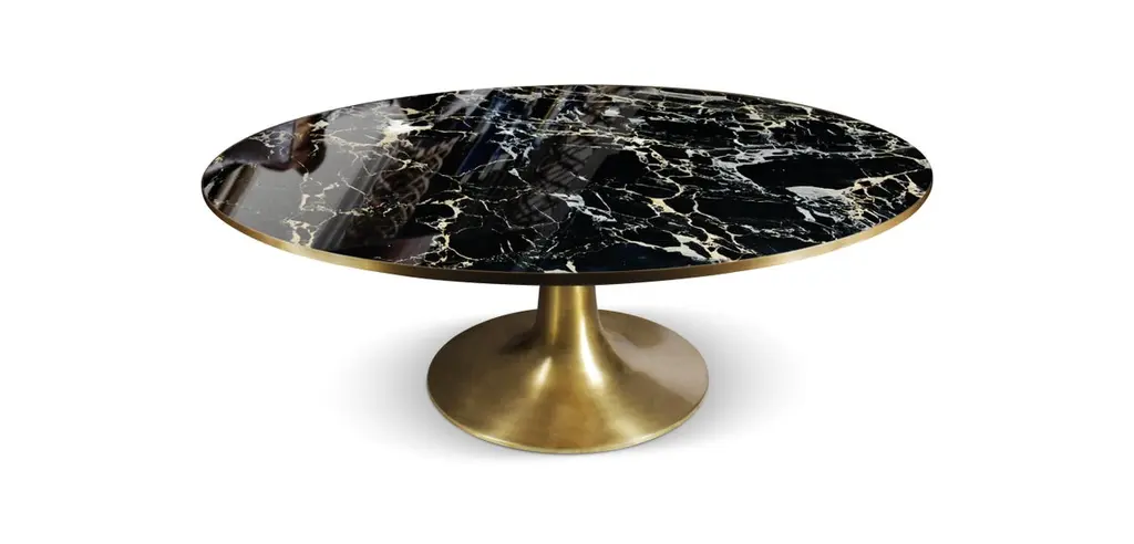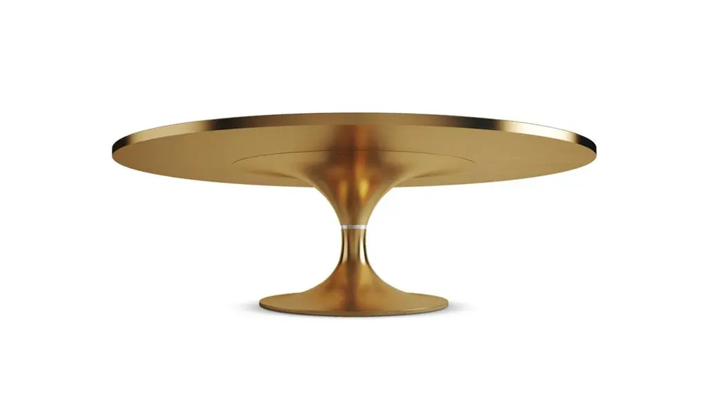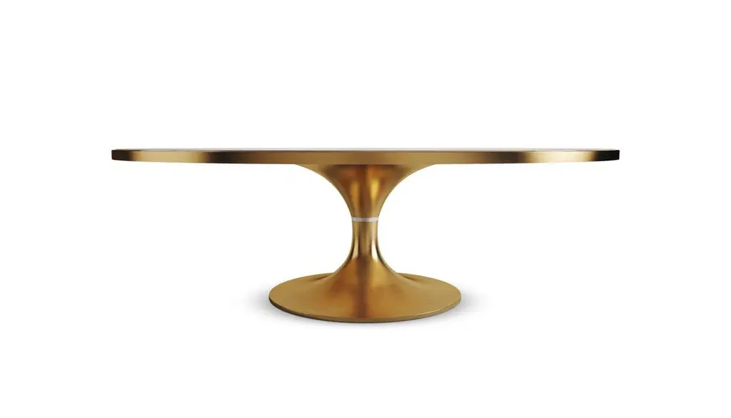 Caddo is one of Texas’s few non-oxbow natural lakes and is the second largest in the South; however, it was artificially altered with the addition of a dam in the 1900s. Caddo's modern dining table was inspired by this immense natural lake from Texas. Caddo modern dining table’s top is made in Calacatta marble, while the structure is made in brushed brass until the base, also detailed with marble. This stately yet sober contemporary dining table represents a must-have for any luxurious living space.