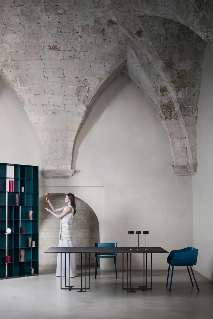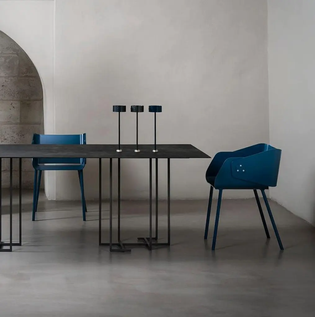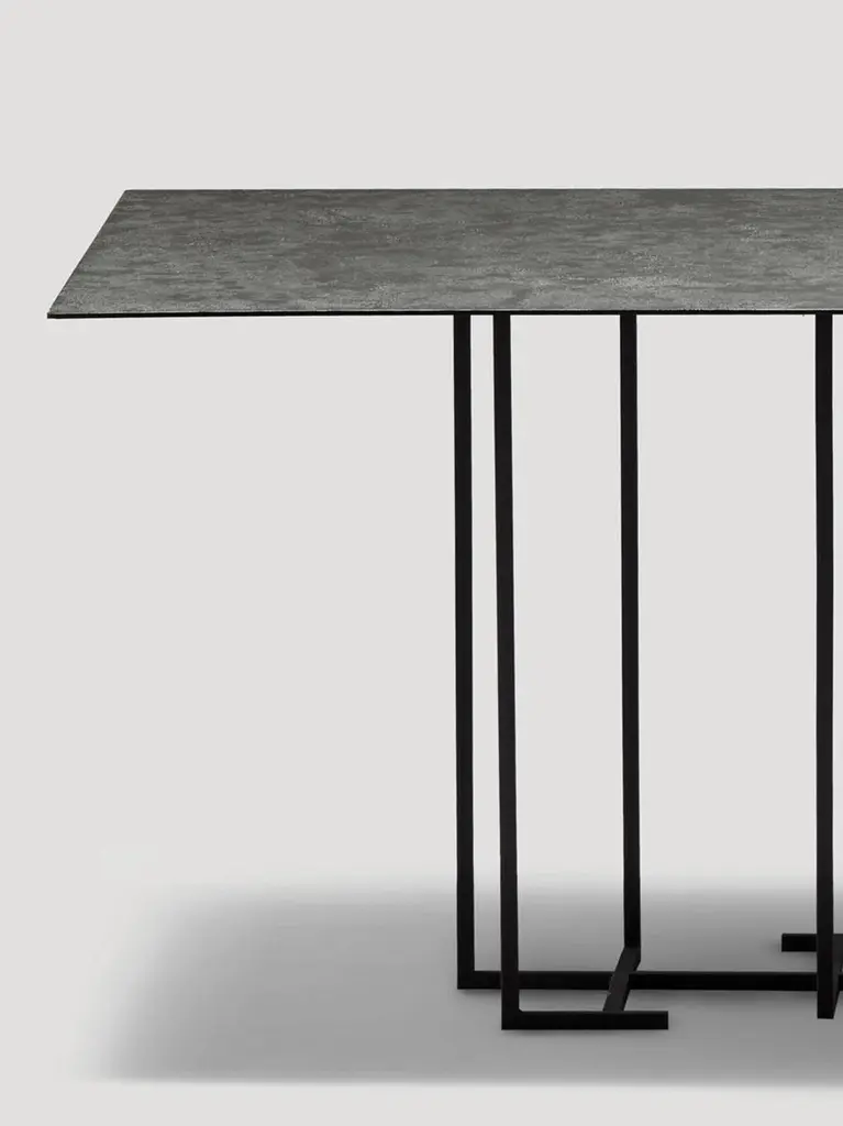 Indoor-outdoor table, legs and frame realized in welded square drawn steel rod,available with steel top or other tops of the DAA collection.