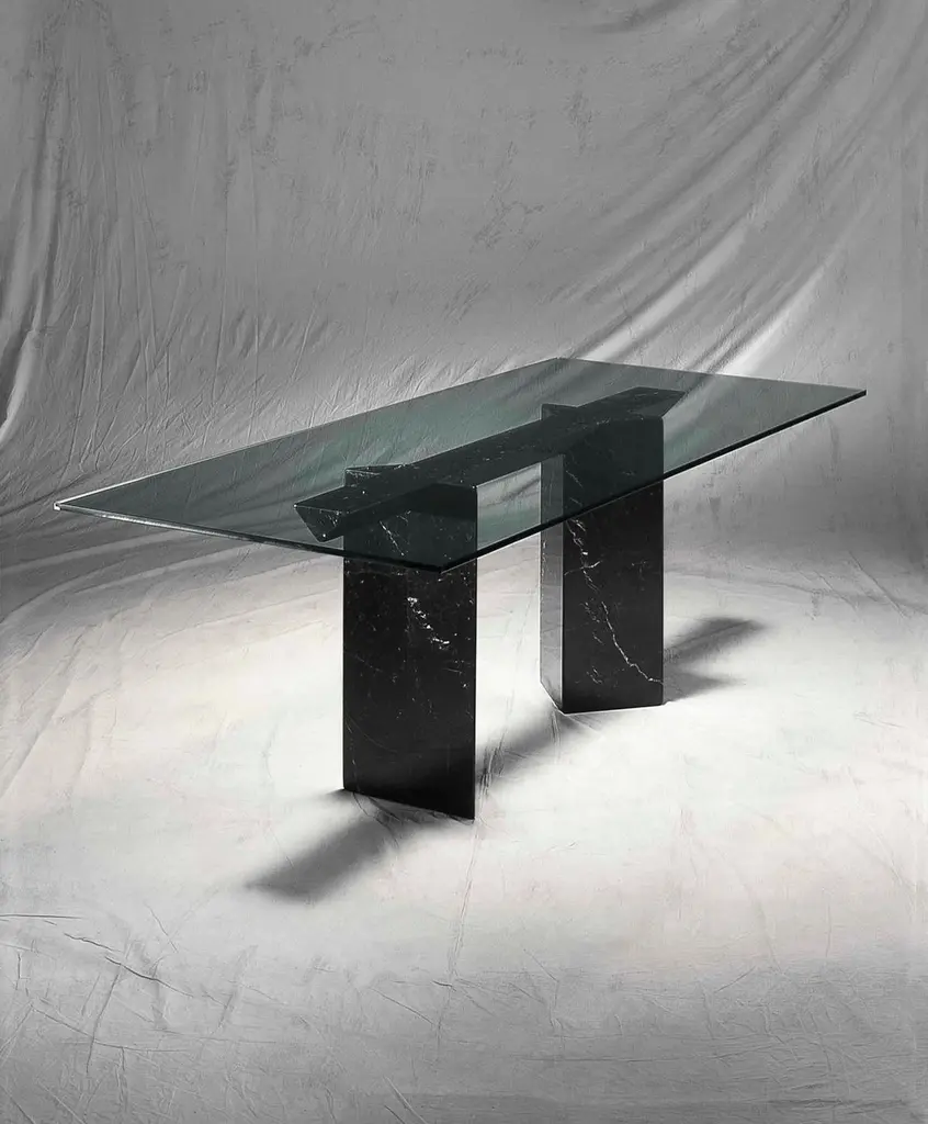 Marble dining table designed by Arch. Giulio LazzottiSize: cm. 180 x 130 x 73 H .Materials: Bianco Carrara or Nero Marquina.