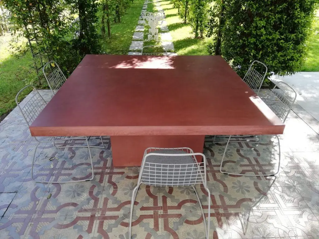 21st Century Giorgione 180, Red Concrete Dining Table, 100% Handcrafted In Italy