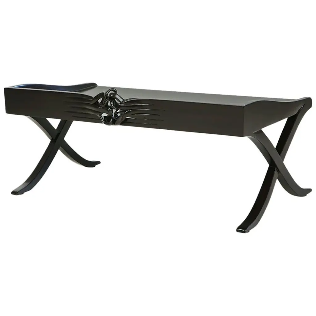 21st Century Marcantonio Dining Table Wood Inlay Black Lacquered Scapin
