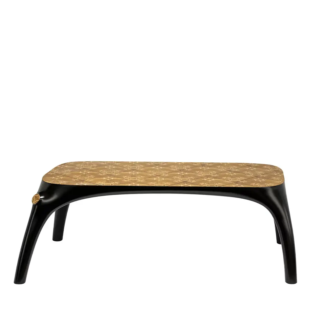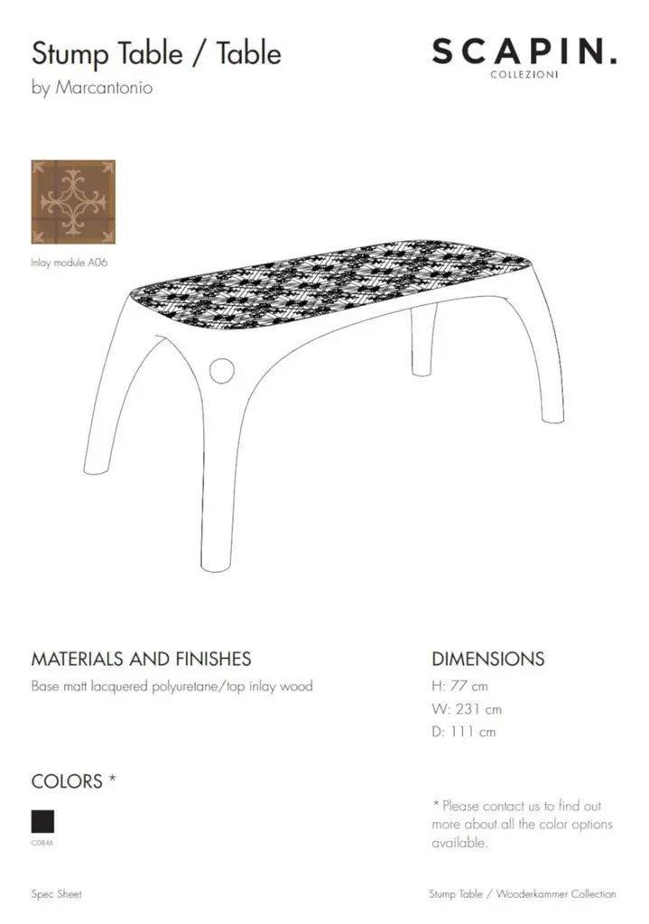 Stump tableStump table è un tavolo che imita le forme organiche dei ceppi di legno e delle lororadici. Il piano, intarsiato con motivo Fiorentino, è realizzato con diverse tipologie dilegno.Stump Table is a table which mimics the organic shapes of wooden logs and their roots.The top, inlaid with Florentine motif, is produced with different types of wood.