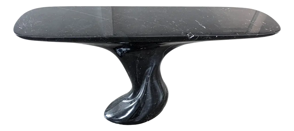 21st Century Modern Sculptural Marble Table From Block With Glass Top