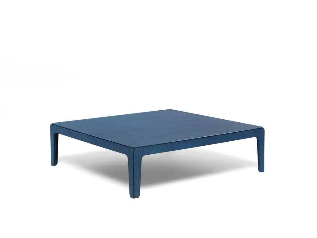 A family of 4-legged tables made of MDF covered with blue stained eucalyptus veneer. Through a simple trick the table, which is in fact the assembly of five parts, appears sculpted from a solid block. The four lateral elements, once they are assembled with the top, become structural without the need for additional parts that would in turn compromise the sculptural effect of the piece.. The table top is 70 cm wide, like a Classic fratina, the ancient long dining table of monasteries. This choice of proportions privileges length over width, thus slendering the table and increasing the proximity and the intimacy of diners.MDF, blue eucalyptus veneer. Other veneers are available upon request.