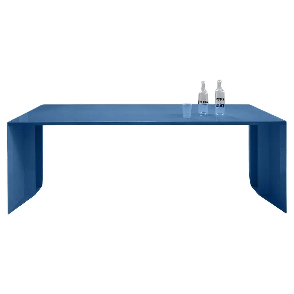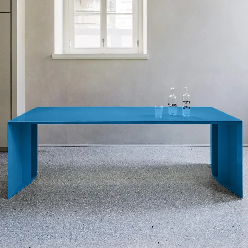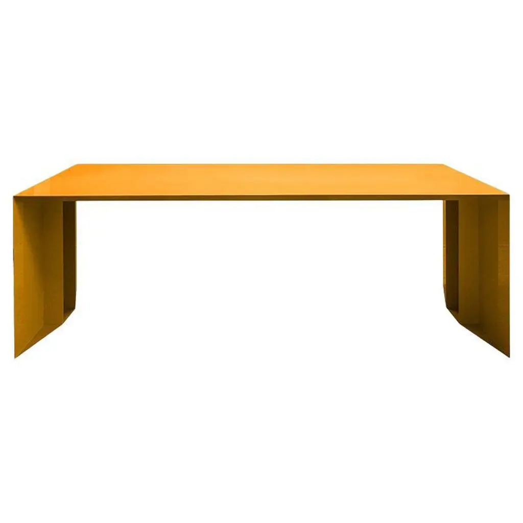 Handmade lacquered iron table, obtained by bending a single metal sheet.Dimensions and colors customizable on request.Please note that due to extended production lead times during the Summer Holidays-August and Christmas period, the delivery schedule might be extended. The exact lead time will be provided upon request.