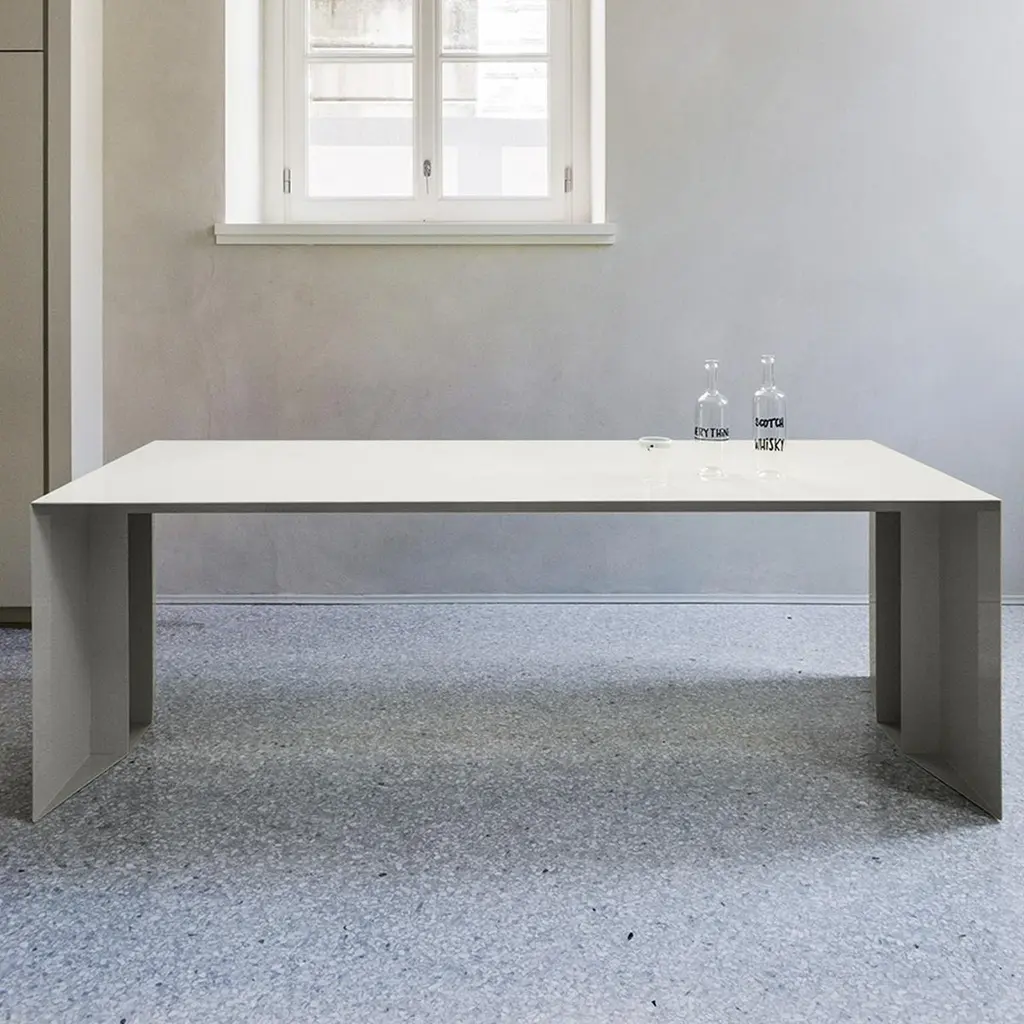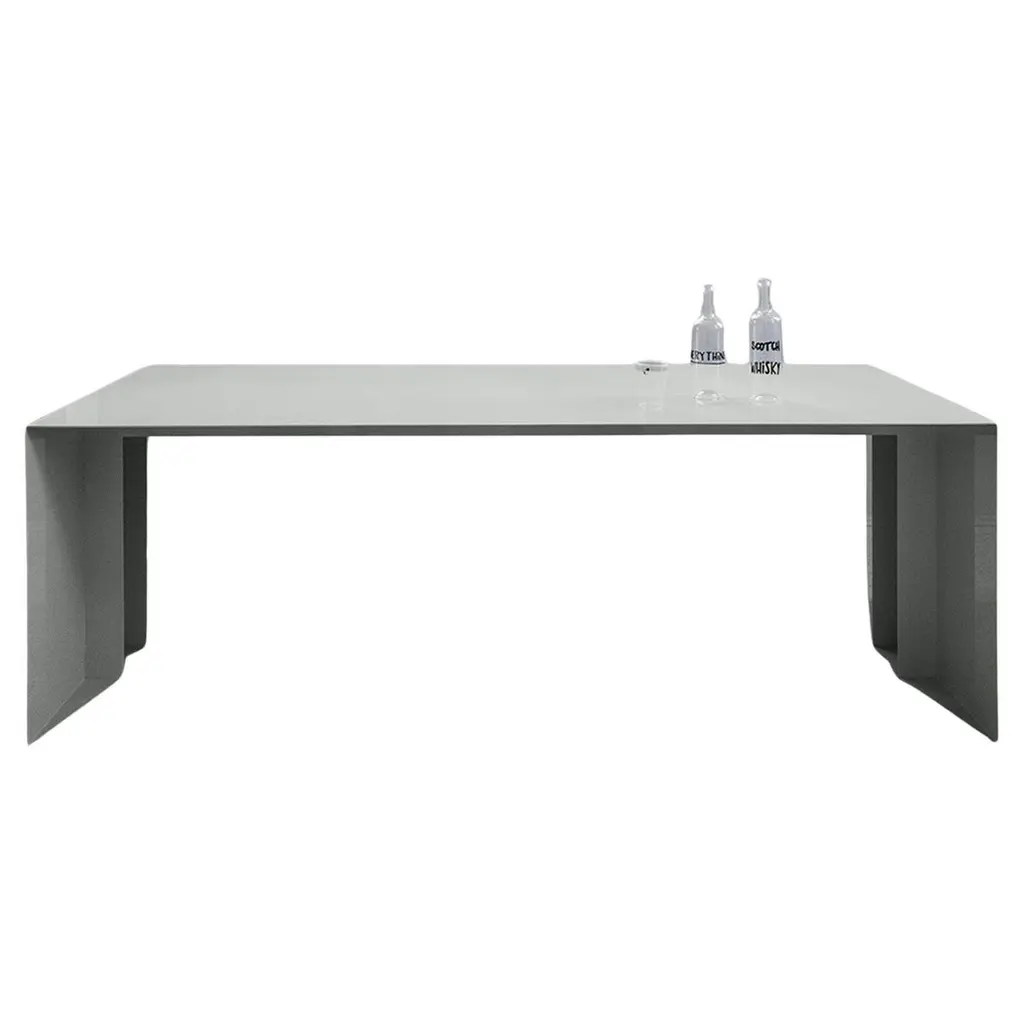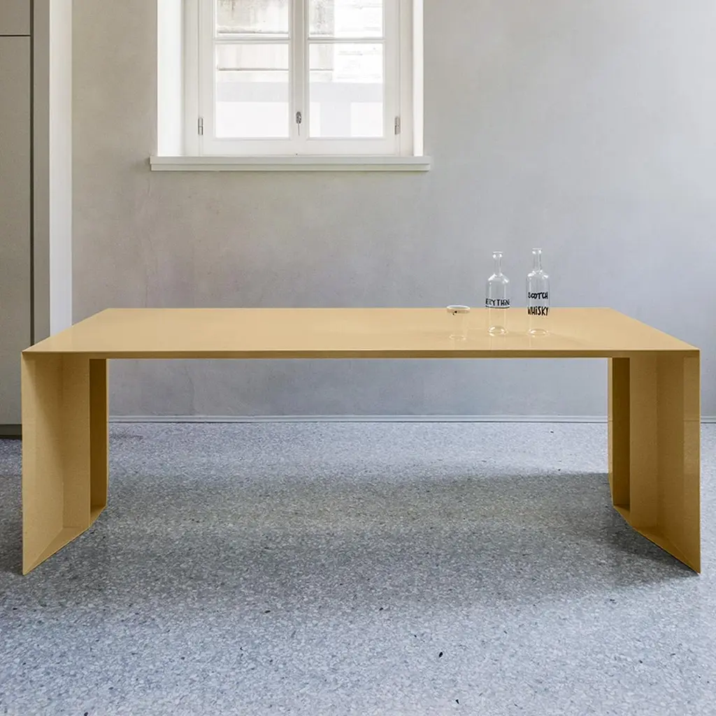 Handmade lacquered iron table, obtained by bending a single metal sheet.Dimensions and colors customizable on request.Please note that due to extended production lead times during the Summer Holidays-August and Christmas period, the delivery schedule might be extended. The exact lead time will be provided upon request.