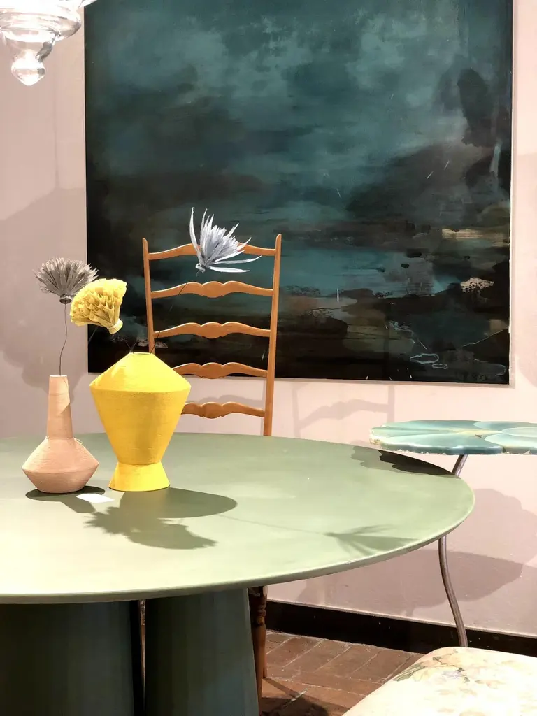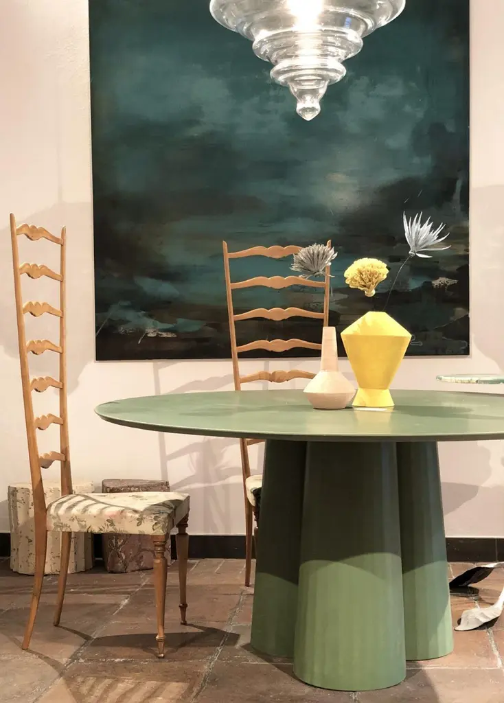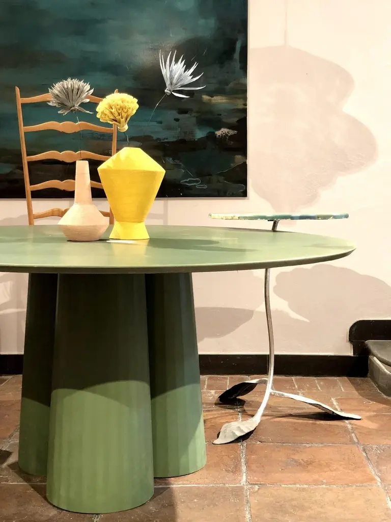 21st Century Studio Irvine Concrete Circular Dining Table Green Cement Handmade