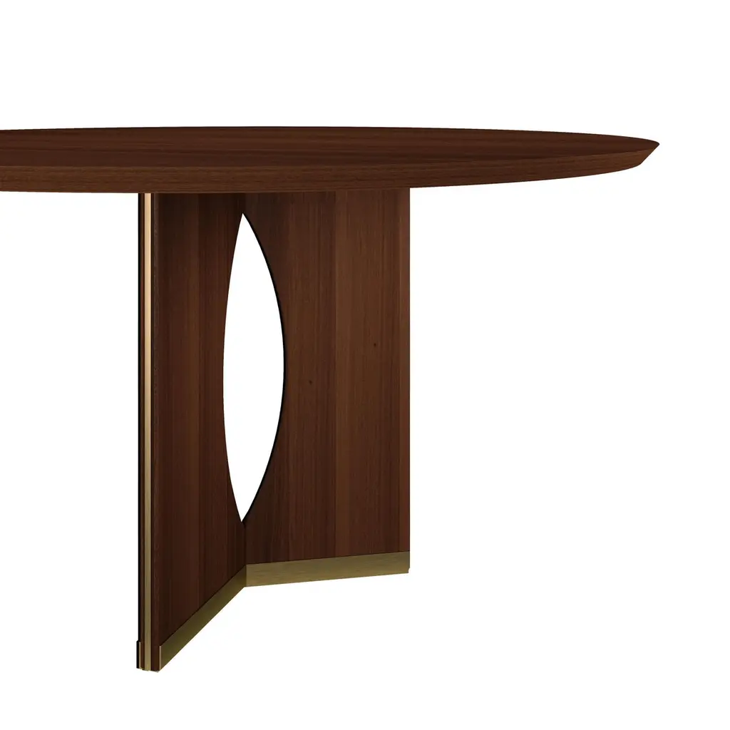 Boodle’s is a London Gentlemen’s club, founded in the 18th century, whose the English Architect, Robert Taylor was a prestigious member. Taylor followed his father’s steps and started his career working as a stonemason and sculptor, enjoyed some success he turned instead to architecture. Through some connections, he came to be appointed as the Bank England’s architect.Inspired by the unquestionable talent of this English architect, Wood Tailors designers conceived this deluxe walnut wood round dining table. Featuring one handcrafted unique leg design and premium details in brushed brass, this contemporary dining table has a touch of exclusiveness. The Taylor round dining table is the stylish choice to impress in any timeless dining room décor.
