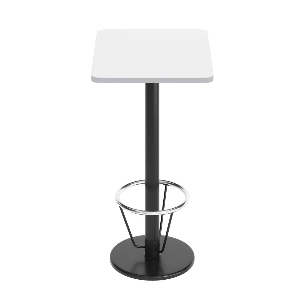 Complete your restaurant, break room or cafeteria with this table top and base configuration.This set is designed for commercial use to withstand the daily rigors in the hospitality industry. This set will also make a great option for your home as a dining table or in the rec room. The reversible top allows you to choose your color of choice and then affix to the base. Surface is heat, scratch and moisture resistant. Use a mild detergent and water, dry clean to keep your tables spotless. The convenient foot rest is the perfect accessory for a bar table, especially in the hospitality industry.Whether you are just starting your business or upgrading your furniture this table set will complete the look.