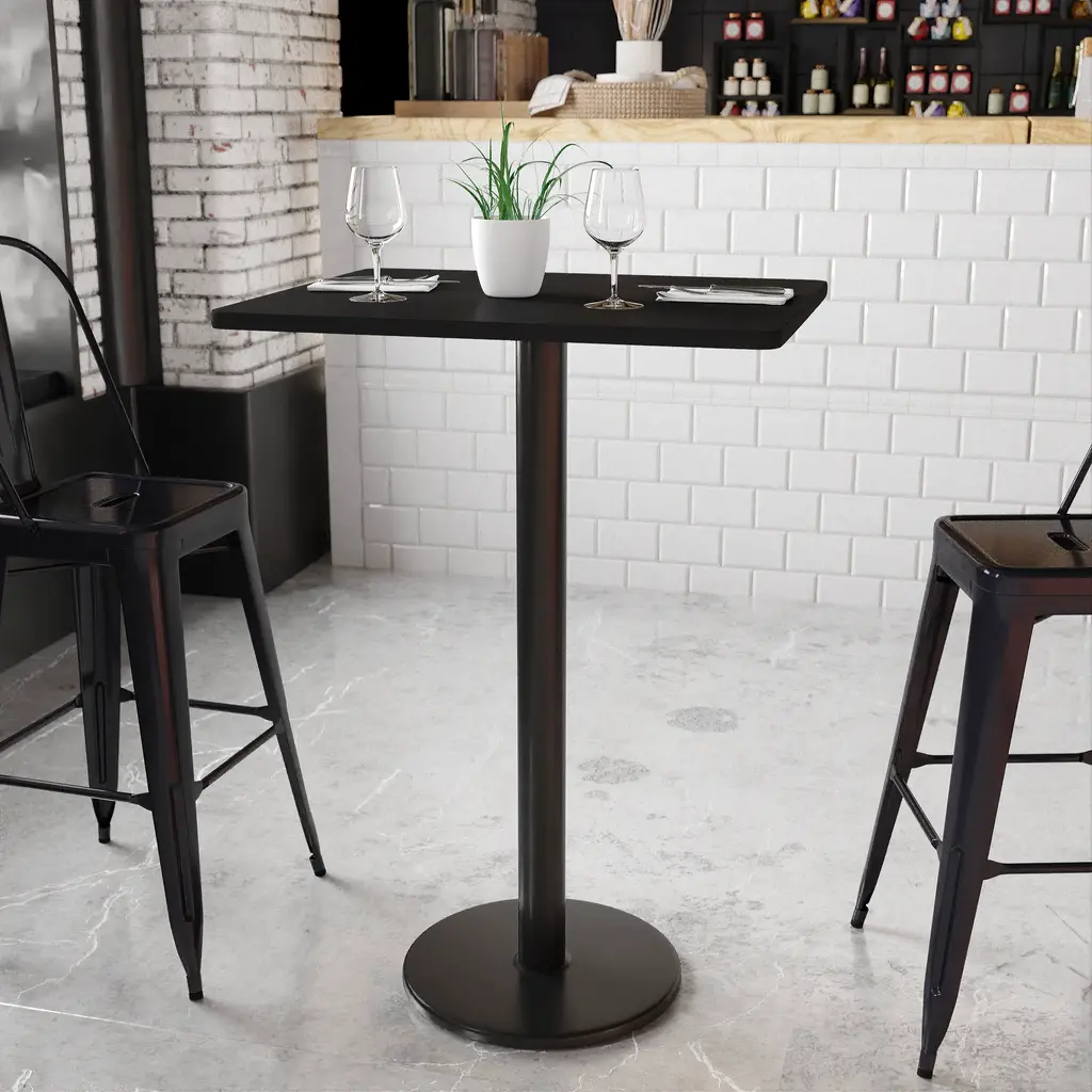 24'' X 30'' Rectangular Laminate Table Top With 18'' Round Bar Height Table Base