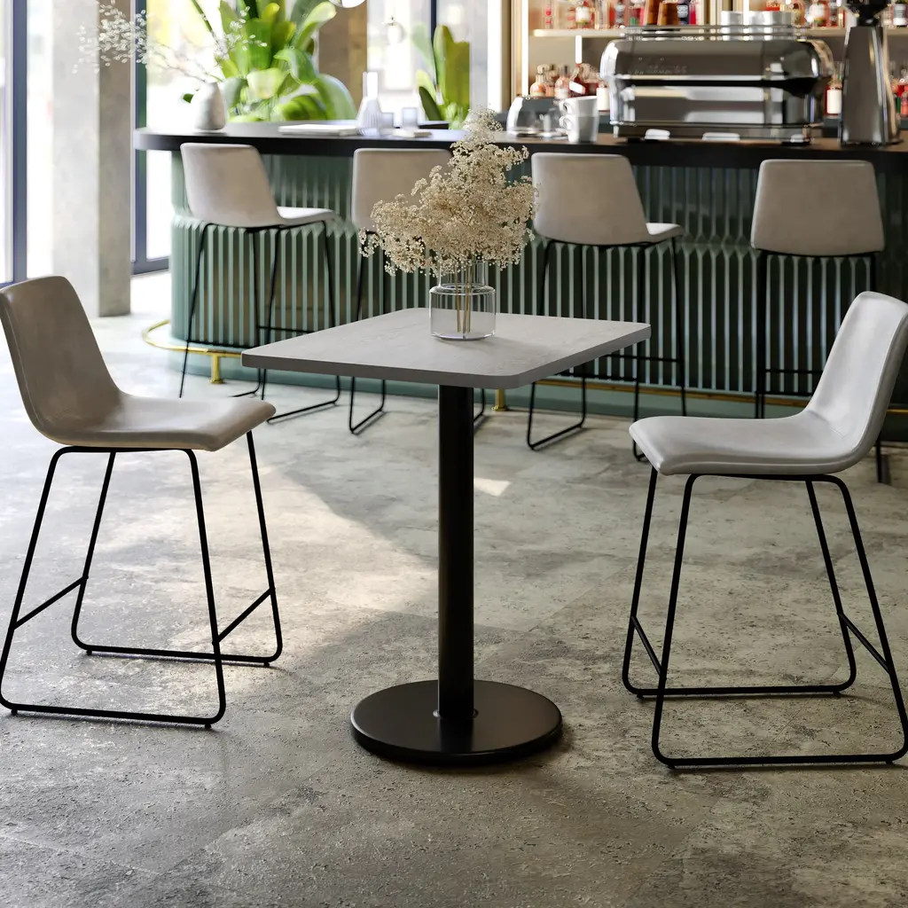 Complete your restaurant, break room or cafeteria with this table top and base configuration.This set is designed for commercial use to withstand the daily rigors in the hospitality industry. This set will also make a great option for your home as a dining table or in the rec room. The reversible top allows you to choose your color of choice and then affix to the base. Surface is heat, scratch and moisture resistant. Use a mild detergent and water, dry clean to keep your tables spotless.Whether you are just starting your business or upgrading your furniture this table set will complete the look.