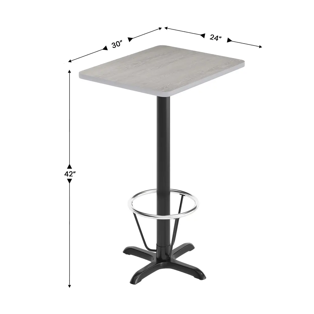 24'' X 30'' Rectangular Laminate Table Top With 22'' X 22'' Bar Height Table Base And Foot Ring
