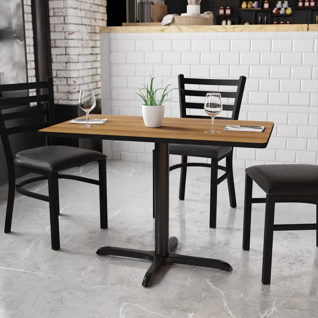 Complete your restaurant, break room or cafeteria with this table top and base configuration.This set is designed for commercial use to withstand the daily rigors in the hospitality industry. This set will also make a great option for your home as a dining table or in the rec room. The reversible top allows you to choose your color of choice and then affix to the base. Surface is heat, scratch and moisture resistant. Use a mild detergent and water, dry clean to keep your tables spotless.Whether you are just starting your business or upgrading your furniture this table set will complete the look.