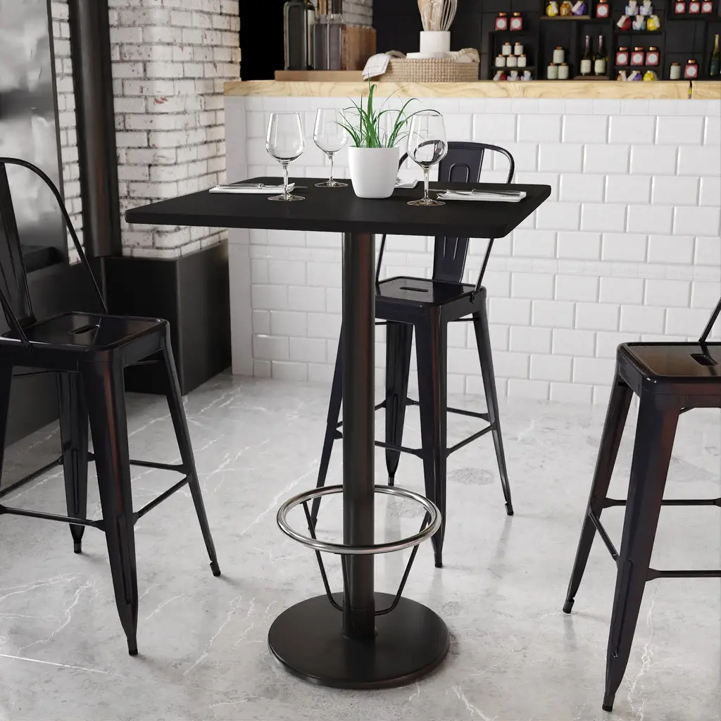 30'' Square Laminate Table Top With 18'' Round Bar Height Table Base And Foot Ring
