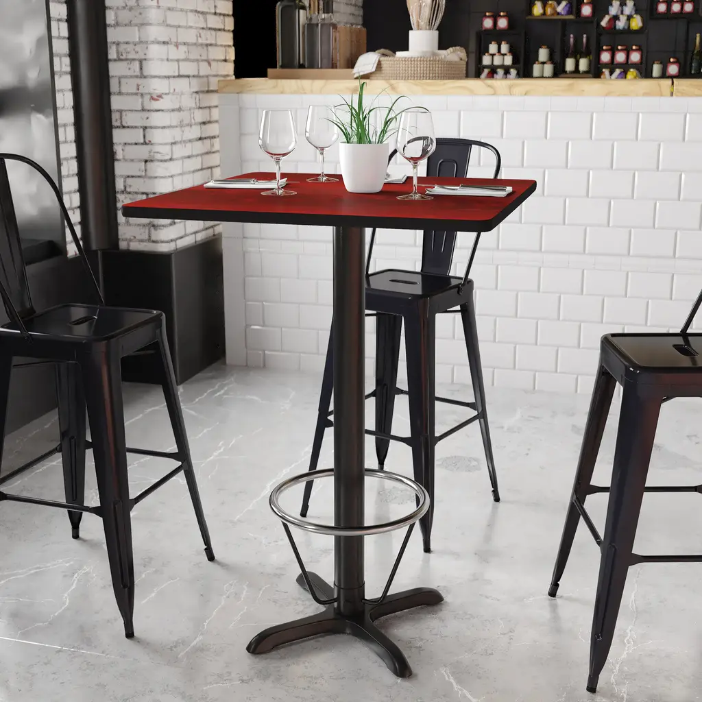 30'' Square Laminate Table Top With 22'' X 22'' Bar Height Table Base And Foot Ring