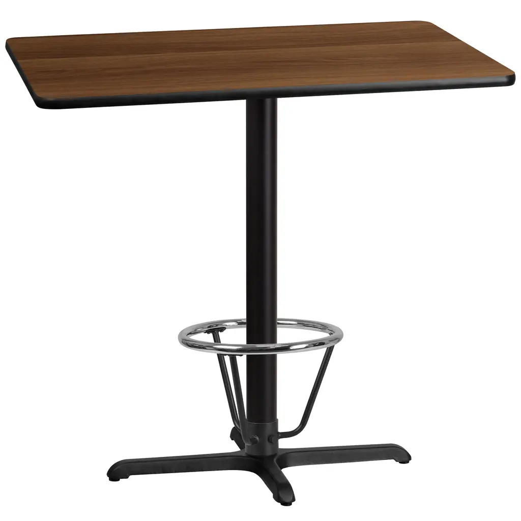 30'' X 42'' Rectangular Laminate Table Top With 23.5'' X 29.5'' Bar Height Table Base And Foot Ring