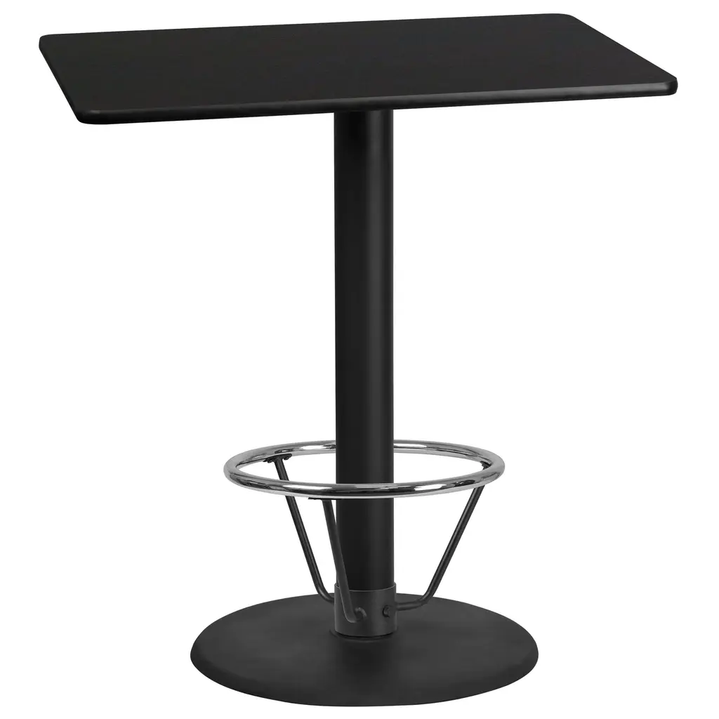 30'' X 42'' Rectangular Laminate Table Top With 24'' Round Bar Height Table Base And Foot Ring