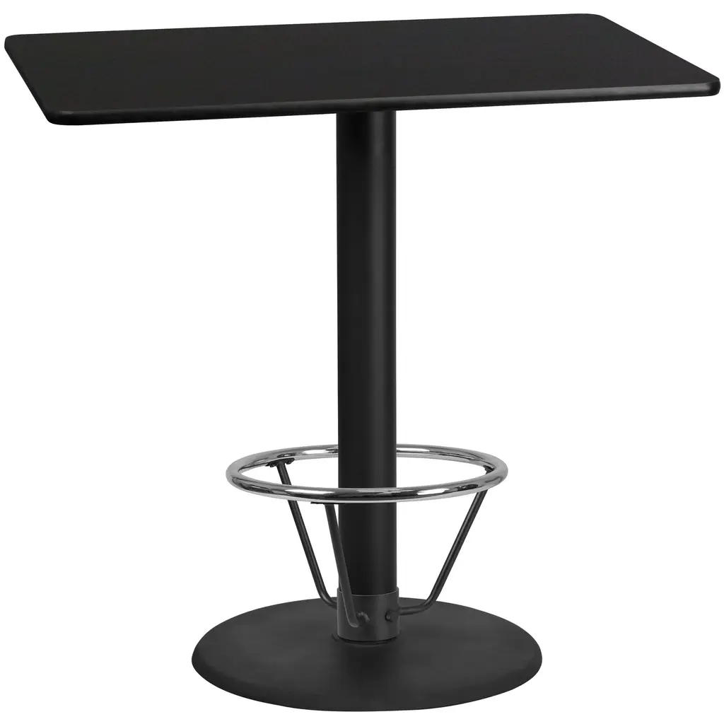 30'' X 48'' Rectangular Laminate Table Top With 24'' Round Bar Height Table Base And Foot Ring
