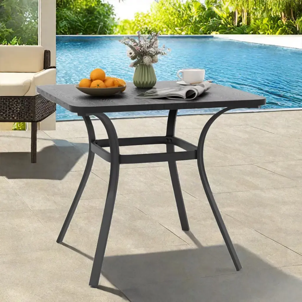 This patio dining table, crafted from solid metal, features a robust structure that is highly resistant to deformation. It can effortlessly host multiple - person gatherings, creating a delightful outdoor dining experience for you. With a spacious 32 - inch by 32 - inch tabletop, it can comfortably seat 4 people. Whether it's a family dinner or a get - together with friends, you can all enjoy happy moments here. The tabletop with a delicate wood - like texture and rounded corners not only exudes elegance but also ensures safety. It is suitable for various outdoor scenarios such as backyards and pool - sides.