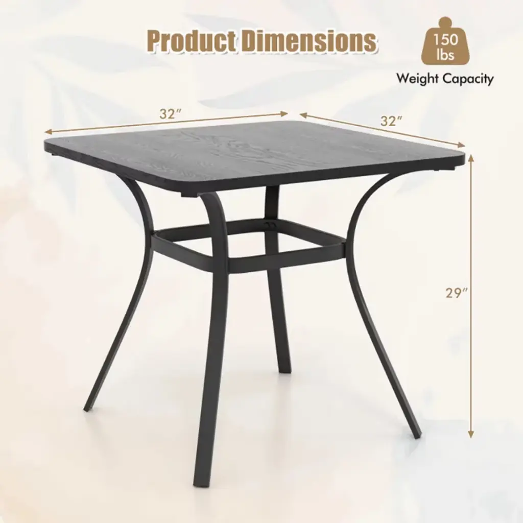 32 Inch Patio Dining Table Metal Square Table For Dining With 4 Curved Legs