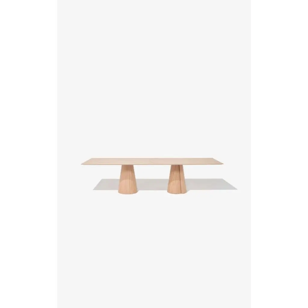 320 Volta Rectangular Dining Table by WentzDimensions: D 120 x W 320 x H 75 cmMaterials: Wood, Plywood, MDF, Natural Wood Veneer, Steel.Also available in different colors: Oak, Walnut, Black, White, Leaf Green.The Volta table references nature in its impermanence. The detail on the base suggests natural movements and refers to nature's construction logic, while the surface with the evident grain of the natural wood veneer reinforces the organic concept of the piece. The new addition to the Volta series consists of two bases, a metal structure for reinforcement and a split top starting at 320cm wide.WENTZSILENT AND NATURAL LIVING DESIGNED IN BRAZILBrazilian brand of furniture, lighting and accessories design.We live in silence, contemplating the environments, through pieces that welcome well-being. We seek to give naturalness to living, with harmonic and sensorial simplicities. We express Brazilian uniqueness through our lines, highlighting local materials and technologies.With a contemporary tropical aesthetic, designer Guilherme Wentz's creations reflect the contemplative personality of their creator, connected to nature and obsessed with design. His designs present a new look at living, where each piece conveys a perfect balance between simplicity and functionality.1987 — Guilherme Wentz is born on July 17, in the city of Caxias do Sul, in Rio Grande do Sul, where he spent his entire youth.2008 — Guilherme drops out of the Business Administration course to start a new creative life studying Product Design.2010 — Begins his career as a designer at the Riva objects brand, where he works for two years.2012 — Recently graduated, receives the IDEA Brasil award for his first product on the market, the Officer desk, developed for the São Paulo brand Decameron.2013 — Receives the iF Design Award for his second signed project, the K for Riva Collection, sets up his studio and starts designing for different brands of furniture, lamps and objects.2014 — Moves the studio to São Paulo, takes on the Style Directorship of the Decameron and Carbono brands and is invited to a project commissioned by the São Paulo Museum of Modern Art.2016 — Joins businessman Rafael Gehrke to launch his first independent collection, called "Capítulo 1", which in its first year was already available in some of the main designer stores in Brazil and the United States. In the same year he was named "Rising Talent" by Maison & Objet Americas and received the Museu da Casa Brasileira and iF Design Awards, both for Luminária UM, developed for Lumini.2017 — Named "Rising Talent" at the Casa Vogue Awards. One of his projects, the Post-Tropical Vase , is acquired for the permanent collection of the Lisbon Design and Fashion Museum.2018 — Wentz is named by the New York Times T Magazine as one of the "6 Rising Studios of the Americas."2019 — The WENTZ brand is established for the production and distribution of independent collections and the launch takes place during New York Design Week. In August, the brand's first store opens in São Paulo.