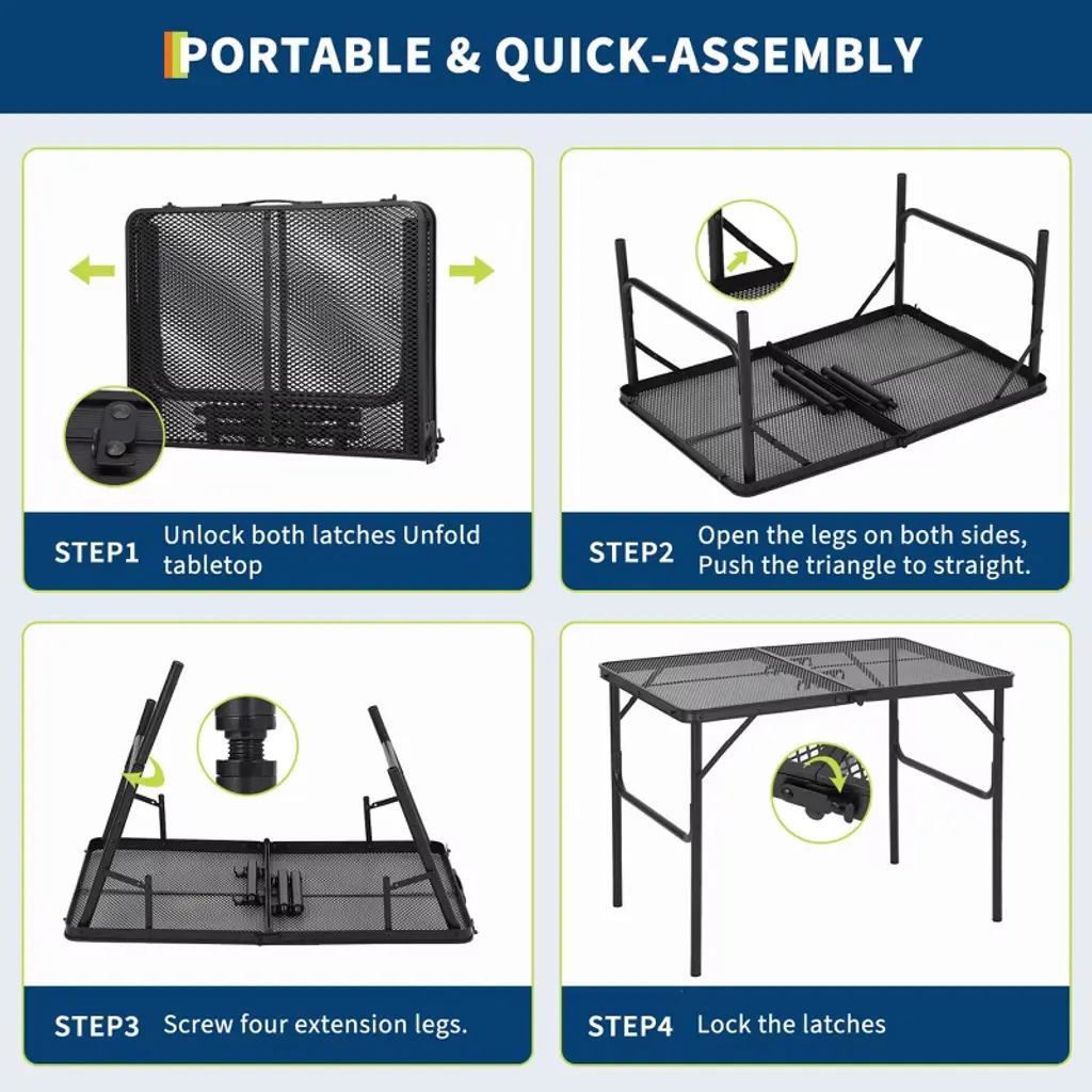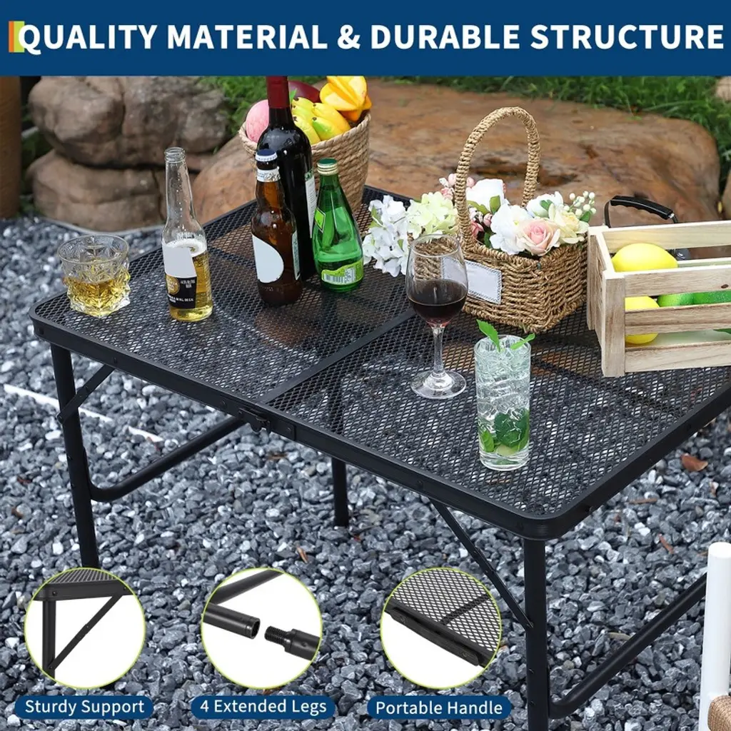 35”x 24” Aluminum Folding Camping Table, Portable Table With Adjustable Height, Metal Tabletop For Beach, Picnics