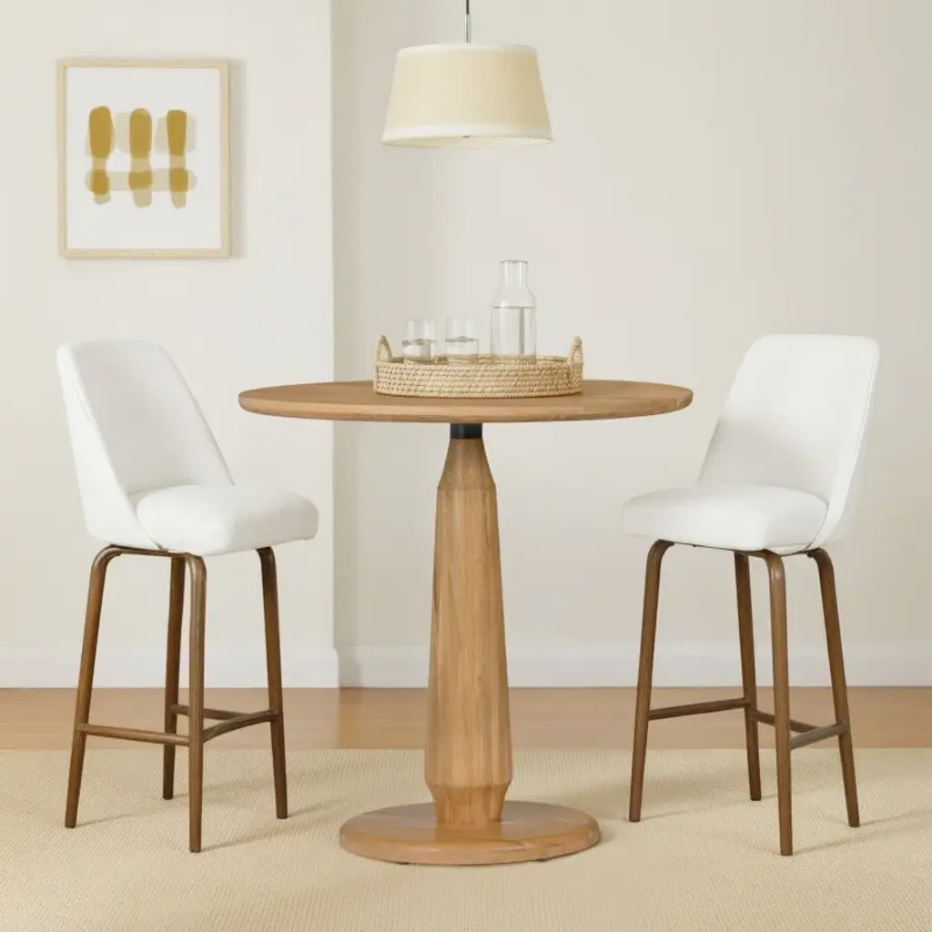 A modern interpretation of the classic cafe table, our Dowel counter table is crafted from solid, FSC Certified oak wood. Expertly turned by master craftsmen, the pedestal and base support a solid wood top with a profiled edge.