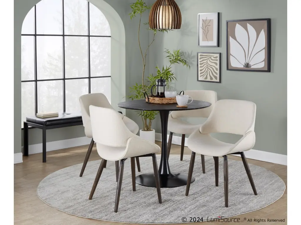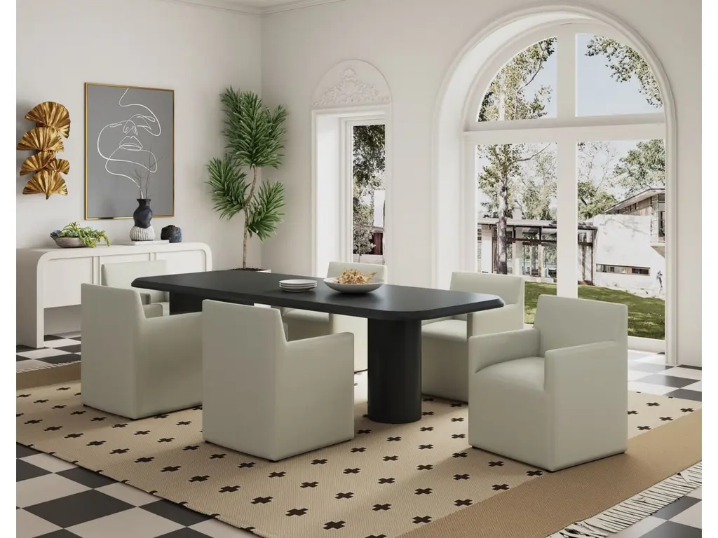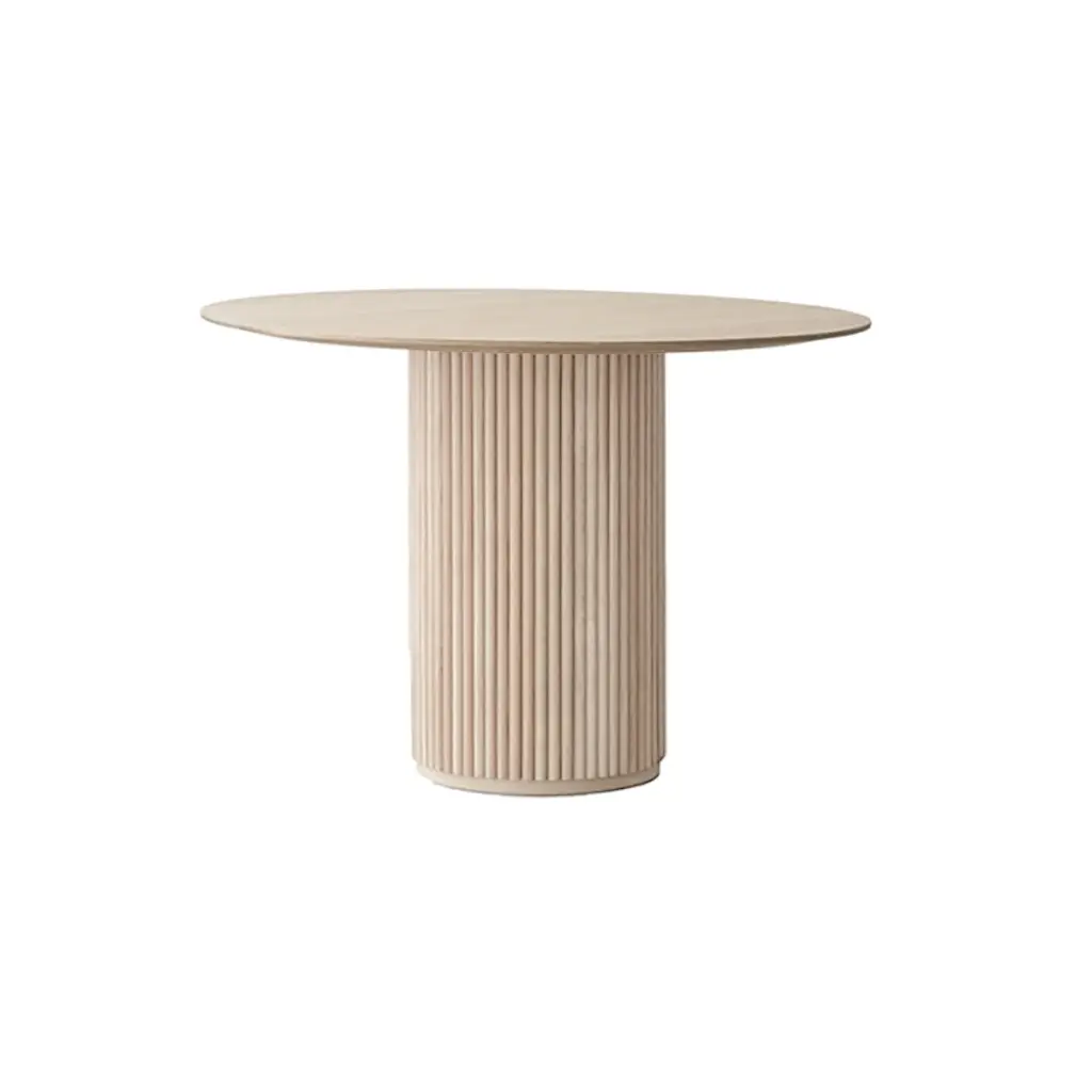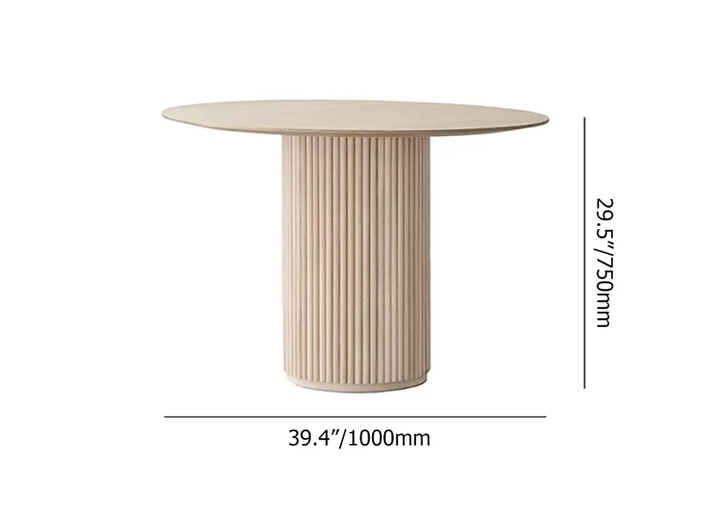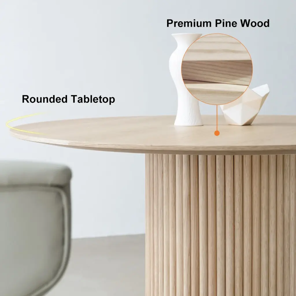 This 39.4" round dining table blends Japandi minimalism with natural warmth, perfect for small dining nooks or apartments. Crafted from solid pine with a whitewash finish, its ribbed base combines beauty with sturdy stability, creating a soothing yet sophisticated atmosphere in your dining space.
